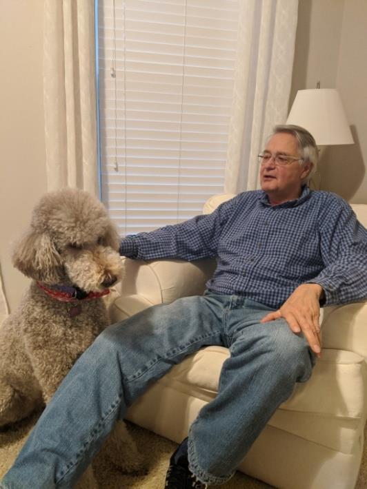 The dog comes up for another scratch behind the ears. A slow massage down her furry back fills my hand with fluffy soft curls