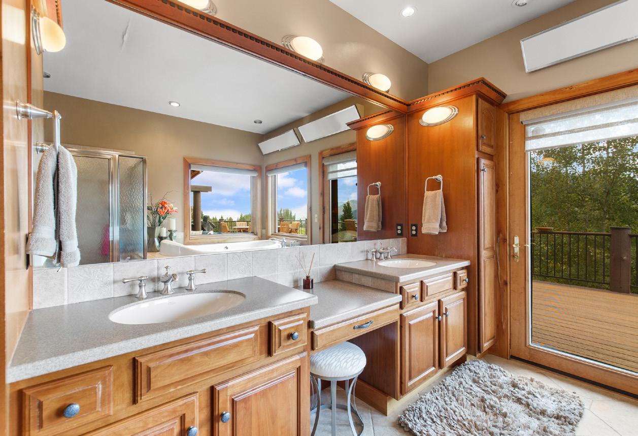 Main Level: kitchen, eat-in dining area with wet bar, laundry/mud room with garage access, 3/4 bath, formal dining area, living room with two-story vaulted ceilings, open loft and wood-burning fireplace, master suite with deck access