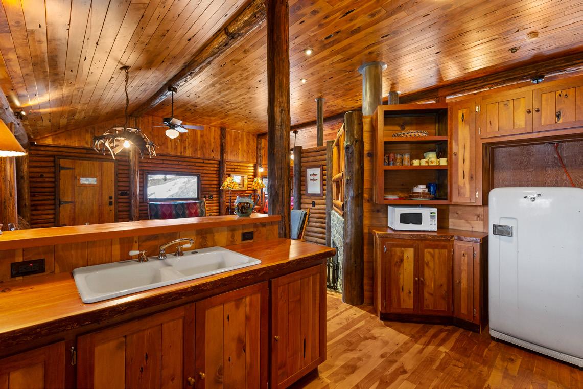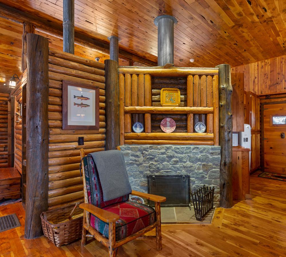 Upper Level – 1 bed, 3/4 bath, kitchen, dining, living area, 2 wood-burning fireplaces, wrap around screened in porch overlooking creek