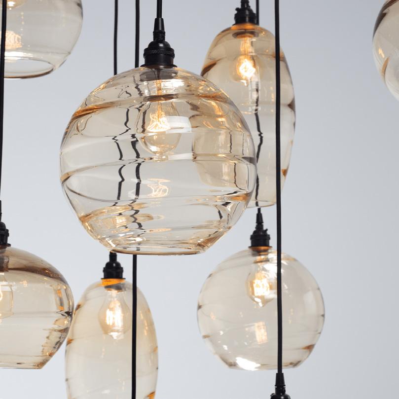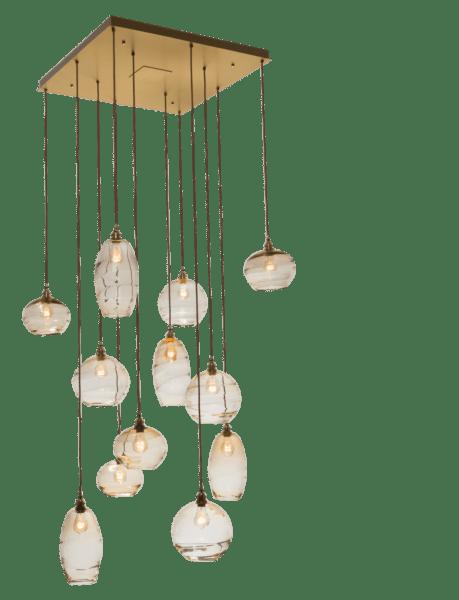 The Misto Square Multi-port combines all three Hammerton Studio Optic Blown Glass shade styles in groups of 9 or 12 under a single square canopy. Misto Square Multi-Light Pendant Chandelier