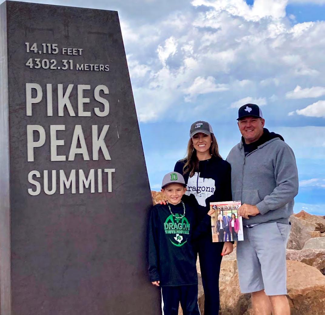 Billy, Kim and Braden Lindamood share the view with Southlake Style from Pikes Peak in Colorado.