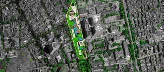 Open dialogue sides with important buildings around the land, dialogue sides include green spaces with public flower gardens, open building sides