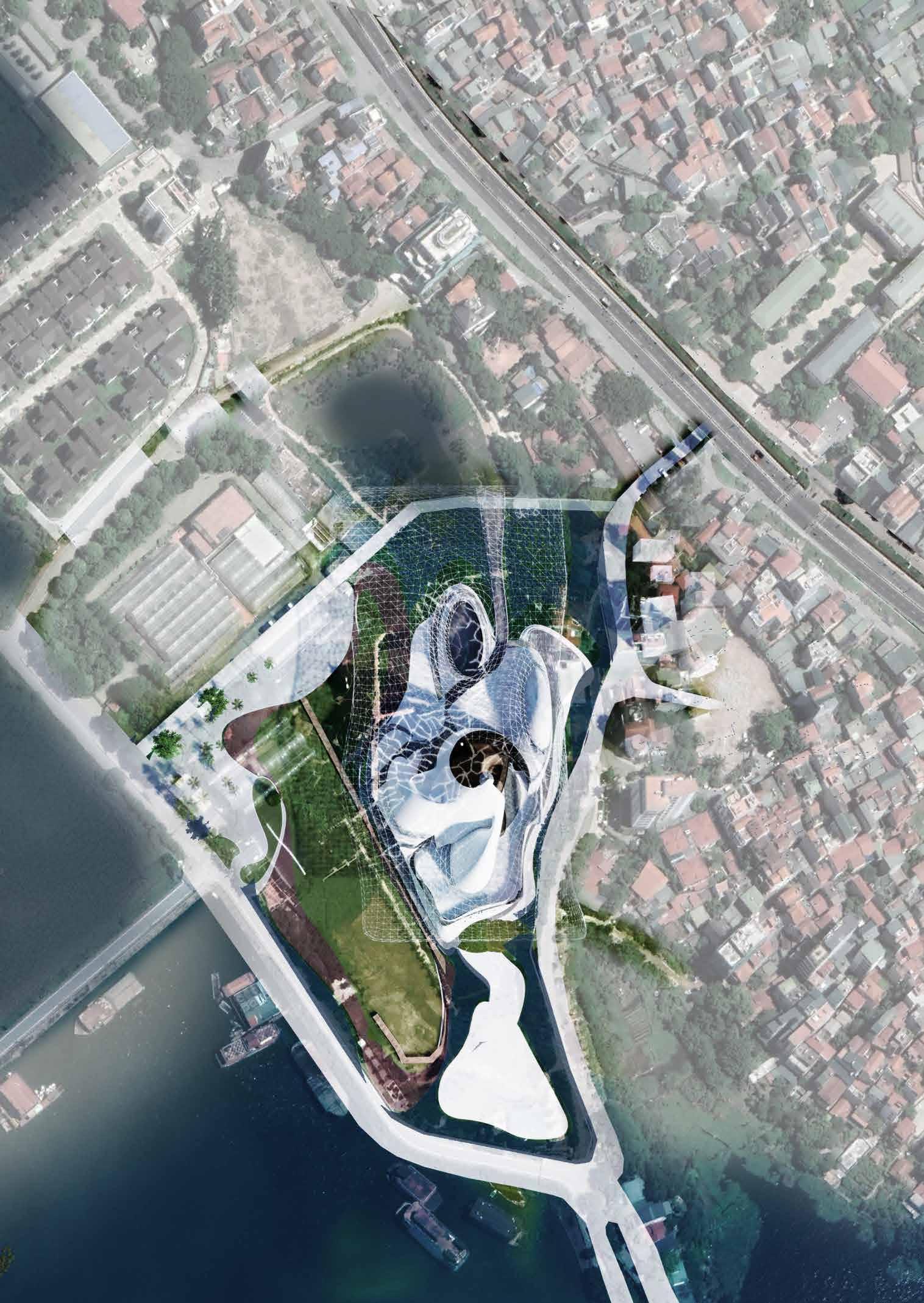 To form a sustainable space: The structure’s core helps stabilize and minimize external influences over time Through that, the shell is a form of direct dialogue with the city.