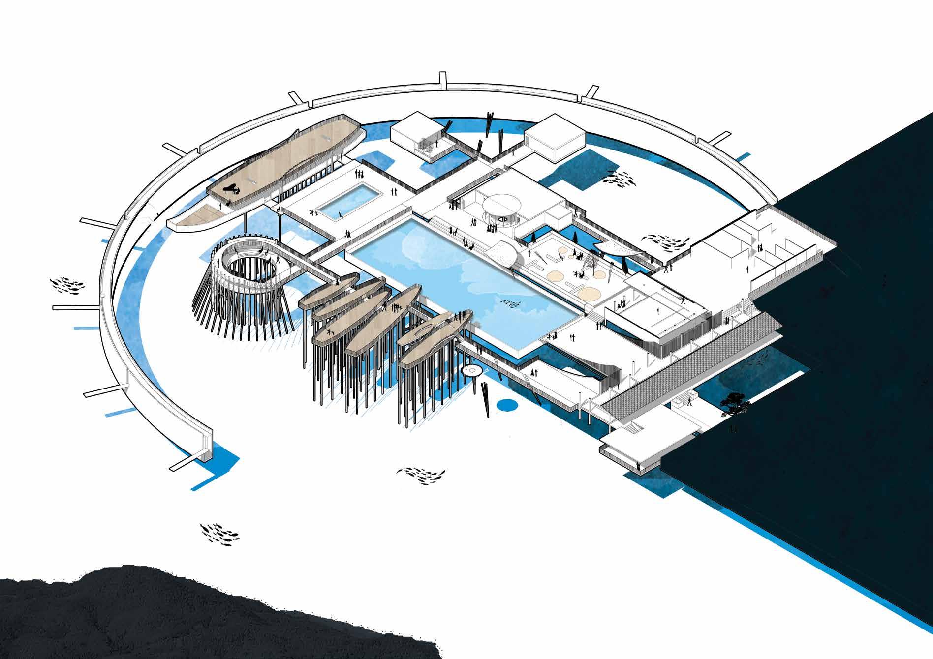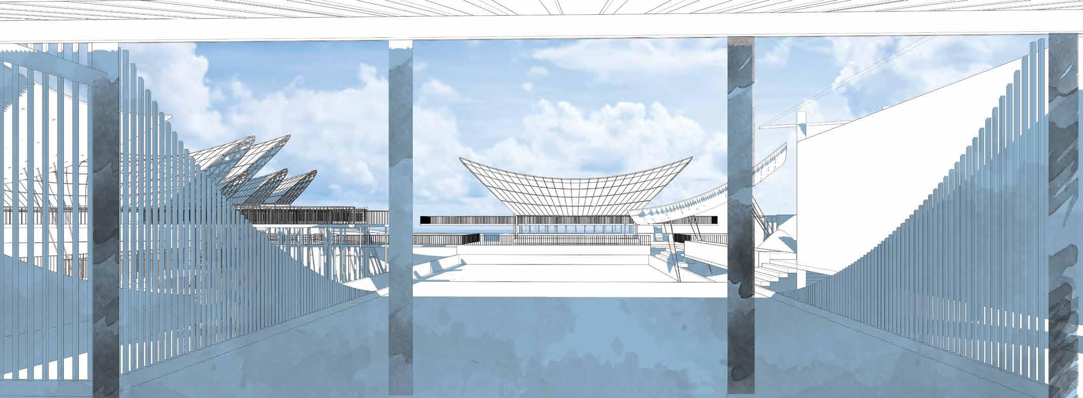 The youth palace is a part of the overall urban area, so it should not be separated or created solely to serve the youth so that the community can use it. Through this, young people will be able to interact with many subjects to develop themselves, not only from the perspective of students