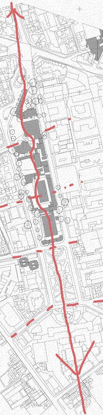 Open dialogue sides with important buildings around the land, dialogue sides include green spaces with public flower gardens, open building sides