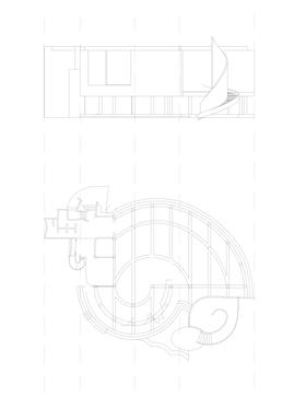 Drawing of plan and front face of building