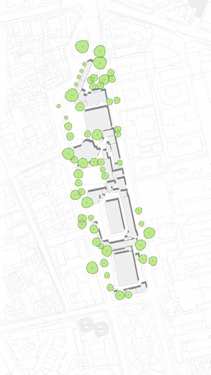 Existing building and tall old tree at the site