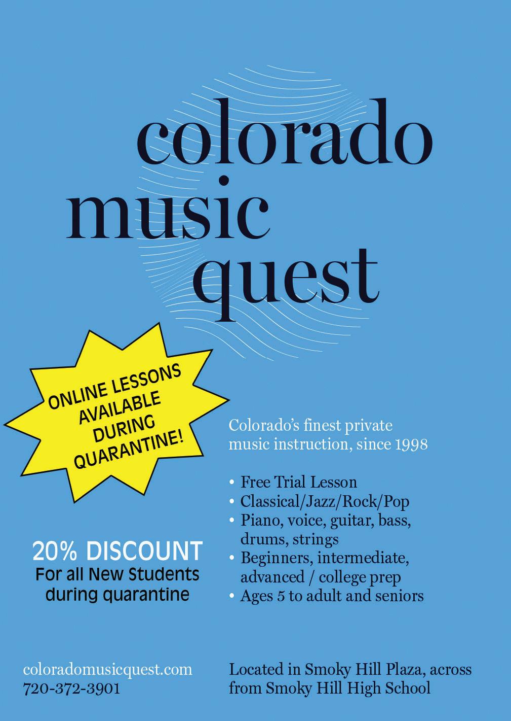 MAY 2023 5 ALL-DAY PLAY, SNOOZE THE NIGHT AWAY LIVE WEBCAMS SPACIOUS CABINS WITH COMFY COTS PET FIRST AID & CPR CERTIFIED CAMP COUNSELORS BETTER with FUR-IENDS DOGGY DAY CARE & BOARDING CAMP BOW WOW® CENTENNIAL 720-697-7491• campbowwow.com/centennial CAMP BOW WOW® PARKER 303-805-9739 • campbowwow.com/parker What will your summer look like? 303-680-3915 11475 Twenty Mile Rd, Suite A, Parker JOIN ONE OF OUR SUMMER MUSIC CAMPS ALLEGROMUSICPARKER.COM ROCK BAND • HARP • STEEL DRUMS • UKULELE PRIVATE AND GROUP CLASSES
