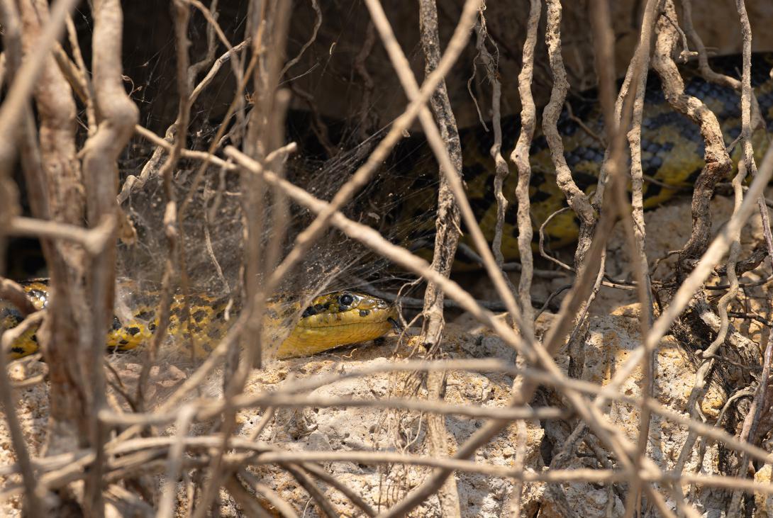 Bird encounters this morning, included a very nice male Bare-faced Curassow, Boat-billed Herons, and many of the usual species, and at last we connected with Sucuri – Yellow Anaconda, finding two of them downstream towards Porto Jofre in the heat of the day, when they tend to leave the river. Unfortunately, neither was particularly photogenic and one was quite a small animal. Maybe only a couple of metres long, so head shots were the way to go. Still very impressive to see this apex predator, nevertheless.