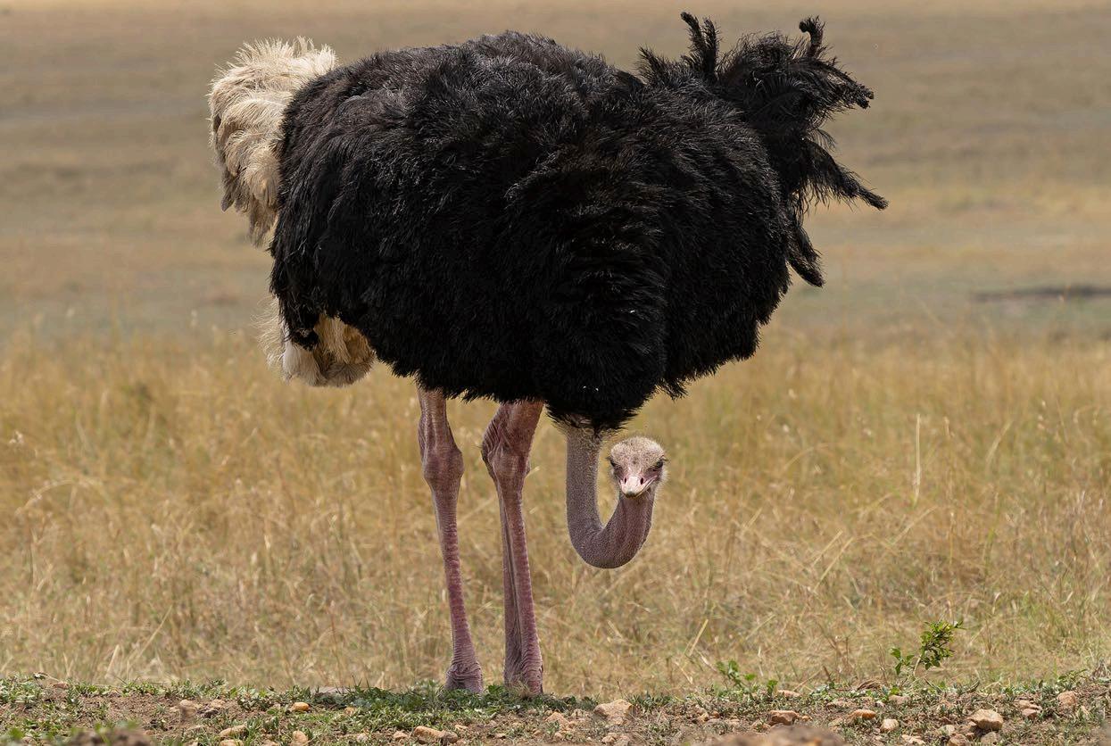 Tawny Eagle, Augur Buzzard and White-headed Sawwing of note. After breakfast we noticed a gradual build up wildebeest and zebras on the Tanzania side of the river, they came down to the shallow water, some to drink but then around 200 wildebeest crossed the riv er, only ankle-deep but at least it was a crossing and quite a picturesque landscape too as they disturbed a pair of Hamerkops. On our return we had a good close encounter with a male ostrich at last on Pose Plains. Back at Entim Camp another walk after lunch produced Go-away Bird, Speckled Mousebird and Woodland Kingfsher again. The afternoon safari produced Maas ai Giraffes on the move towards Pose and then a great audience with a couple of big nasty Lions resting in a watercourse there. They were the sons of famous, now deceased, Lion ‘Scarface’ – ‘Mrefu’ (‘Longest one’) and ‘Doadoanose’ (‘Spotted nose’). The light was pretty bad by now, with 100% cloud cover turning into a light driz zle. So, what to do? Wait for a head shake. That worked pretty well. The sky grew darker and the rain heavier so we called time and headed back. A dramatic thun der and lightning storm followed, which we could watch in comfort from the lounge area. The action wasn’t fnished yet though, towards the end of evening meal we heard a loud roar, a Lion. Wow! That sounded close. There was some activity with our Maasai camp guards