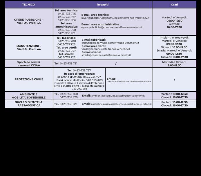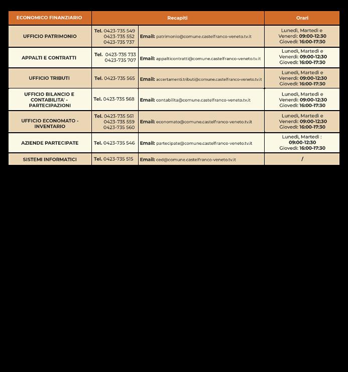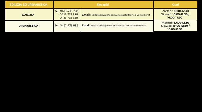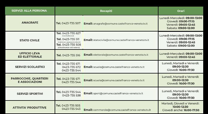 ORARI: Venerdì ore 9-12 previo appuntamento Tel: 0423.735517 - 735577 – 735629 Mail: prossimita@comune.castelfranco-veneto.tv.it sponibile un’offerta integrata di servizi di informazione, orientamento, consulenza e supporto all’utenza e tra questi: