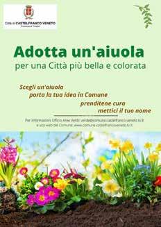 Se hai il pollice verde o se fai parte anche di un’associazione, di un ente o di un’azienda allora il progetto fa per te. Invia una e-mail a verde@comune.castelfranco-veneto.tv.it, porta le tue idee e proposte e mettiti a disposizione per rendere la Città più bella ed accogliente.