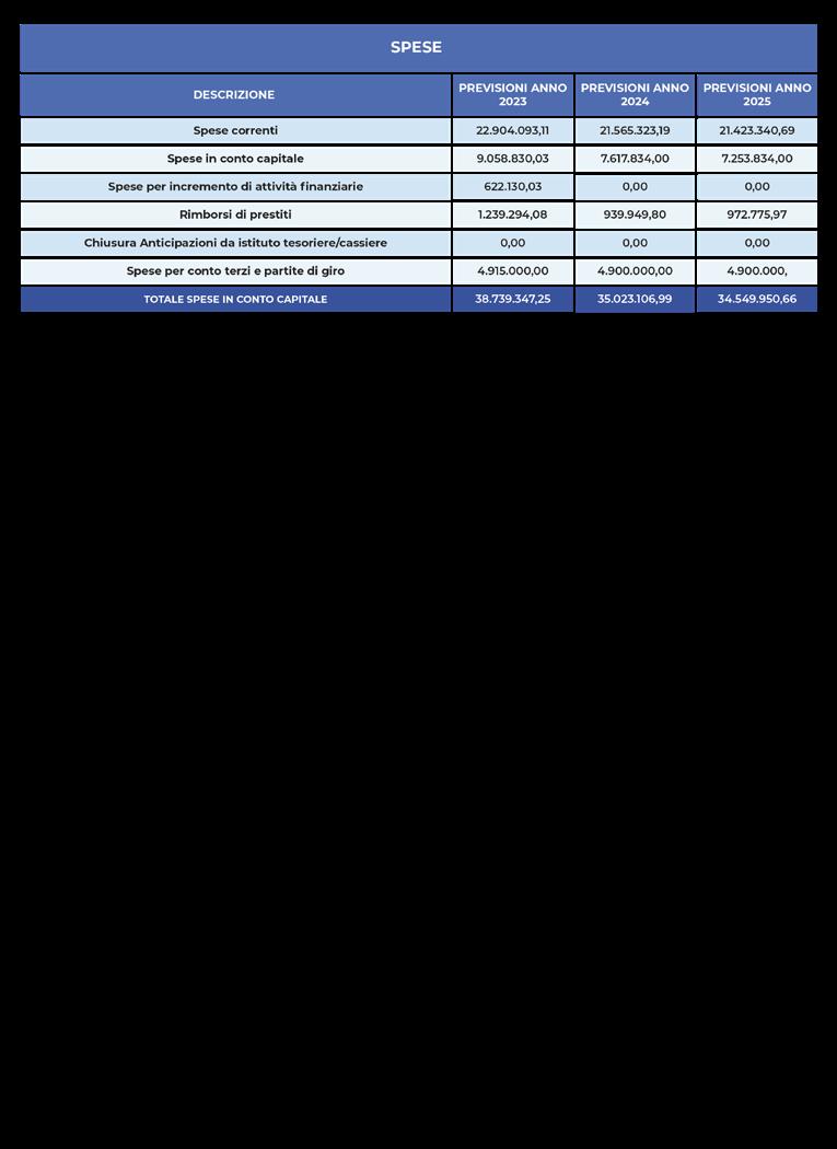 SPESE IN CONTO CAPITALE capitolo entrano le nuove opere pubbliche che saranno possibili nel rispetto di vincoli e dal concretizzarsi di alcune alienazioni.