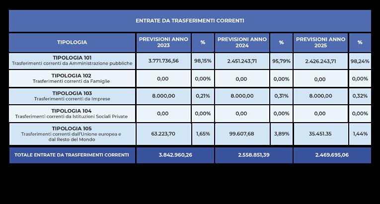 ENTRATE DA TRASFERIMENTI CORRENTI