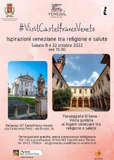 Sono state ben 26, dal 15 gennaio al 31 dicembre 2022, le passeggiate urbane organizzate dall’Ufficio IAT di Castelfranco Veneto. 26 occasioni per scoprire la Città, alcuni dei suoi angoli nascosti ed a molti sconosciuti, passeggiando a passo lento accompagnati da guide che hanno proposto spesso un tema inedito e tutto particolare.