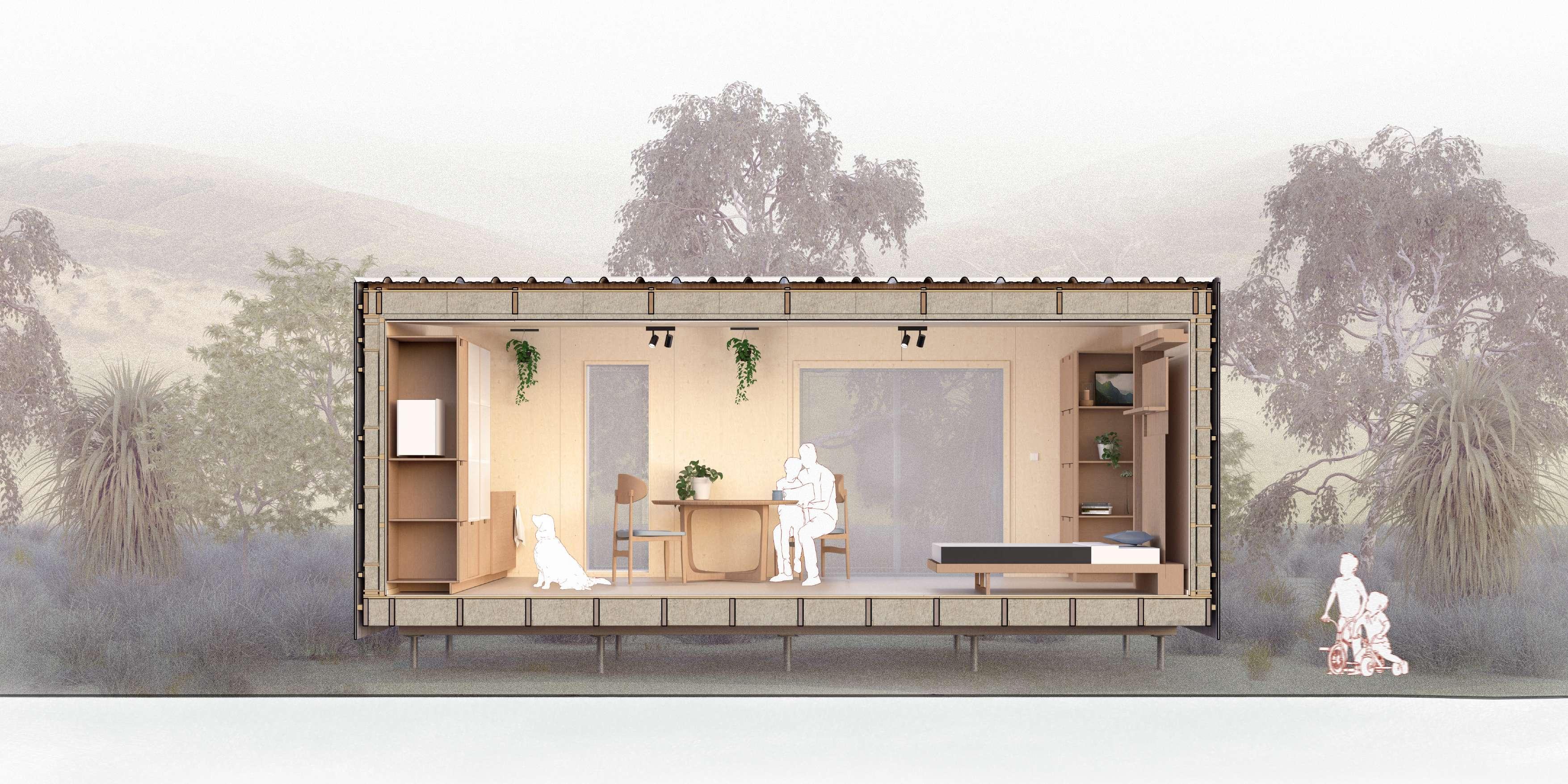 Building on this, the thesis develops a design framework for a 30m² whare prototype that responds to systemic challenges—from the housing crisis to environmental concerns for whenua—by embedding Te Whare Hangahanga principles such as Tangata tū, tangata ora, and Tino Rangatiratanga. Emphasising whānau autonomy, sustainability, and resilience, the design cultivates self-build through a simplicity that balances standardisation with flexibility, ensuring every decision supports affordability, durability, and adaptability. Integrating Passive House and Circular Economy principles, it delivers high performance, energy efficiency, and environmental responsibility while navigating trade-offs between cost, materials, and ease of assembly. The research outputs include a prefabrication system, a guidebook, and insights into whānau-led construction, providing a scalable, practical solution that redefines housing as a pathway to resilience, equity, and a future papakāinga vision.