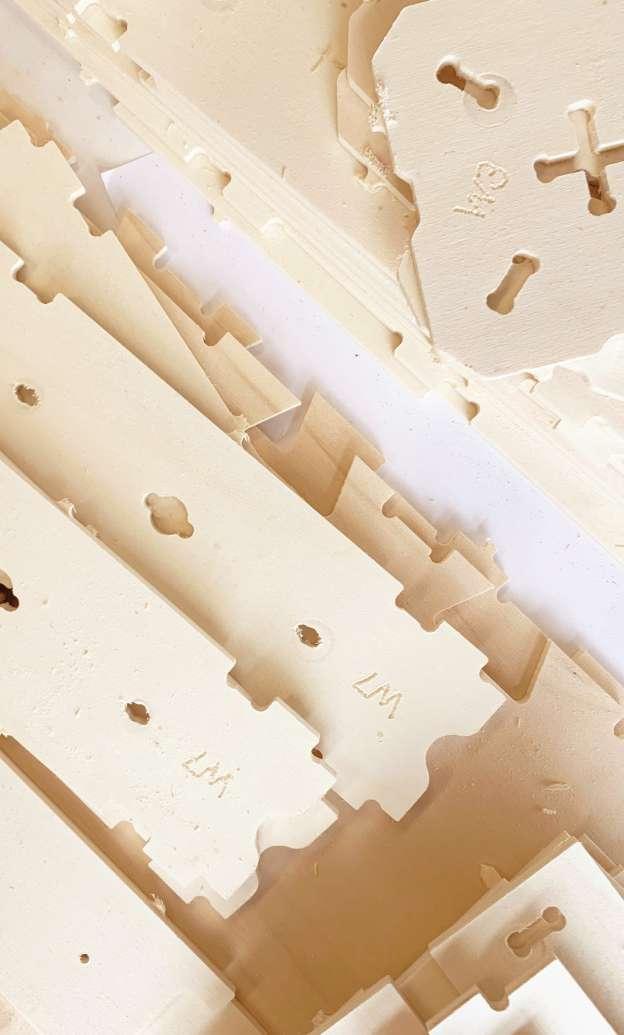 Developing the cut files was a crucial part of the thesis, deepening my understanding of digital manufacturing while developing the whare prototype and custom XFrame components. worked directly with XFrame to refine the digital model, organising the pieces into sheets for efficient CNC cutting. These cut files were then sent to Te Whare Hangahanga, enabling them to fabricate and assemble the structure themselves. This process led me to create assembly instructions for the XFrame panels, requiring careful consideration of user experience and the clearest way to communicate each step. Through this, gained valuable insights into the importance of simplifying complex construction processes for self-builders.