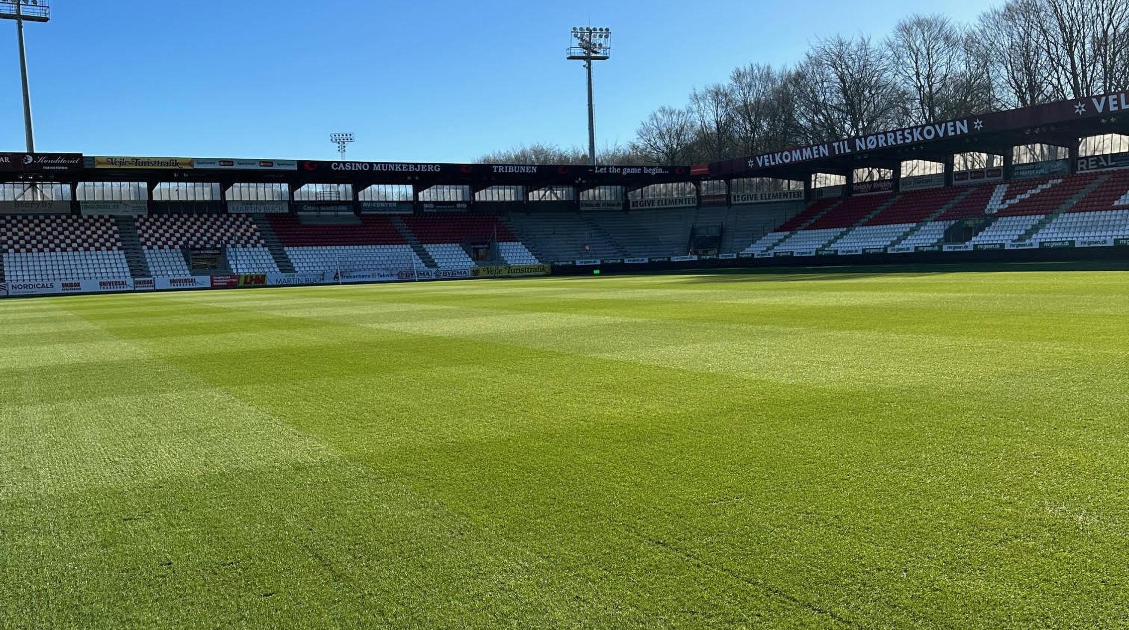 På Vejle stadion var der er udtalt ønske om at komme i Superligaen – Det var også gældende for deres stadionbane og derfor har VB valgt at få installeret Mixto Hybridgræs på stadion.