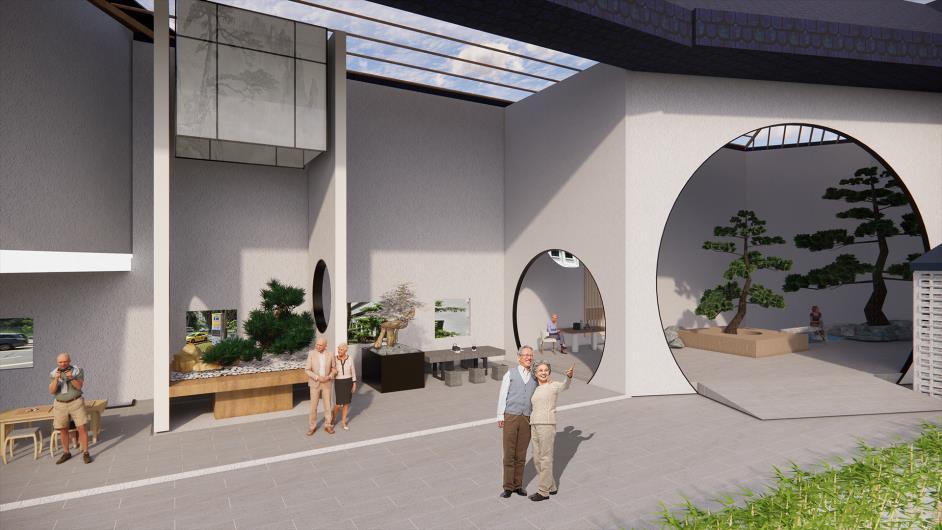 '学' which is known as learning, and I wish that the museum in level one could educate people of the public on Chinese culture. Where '悠' in English means leisure, hoping that the teahouse in level two can cater to people to relax in the space.