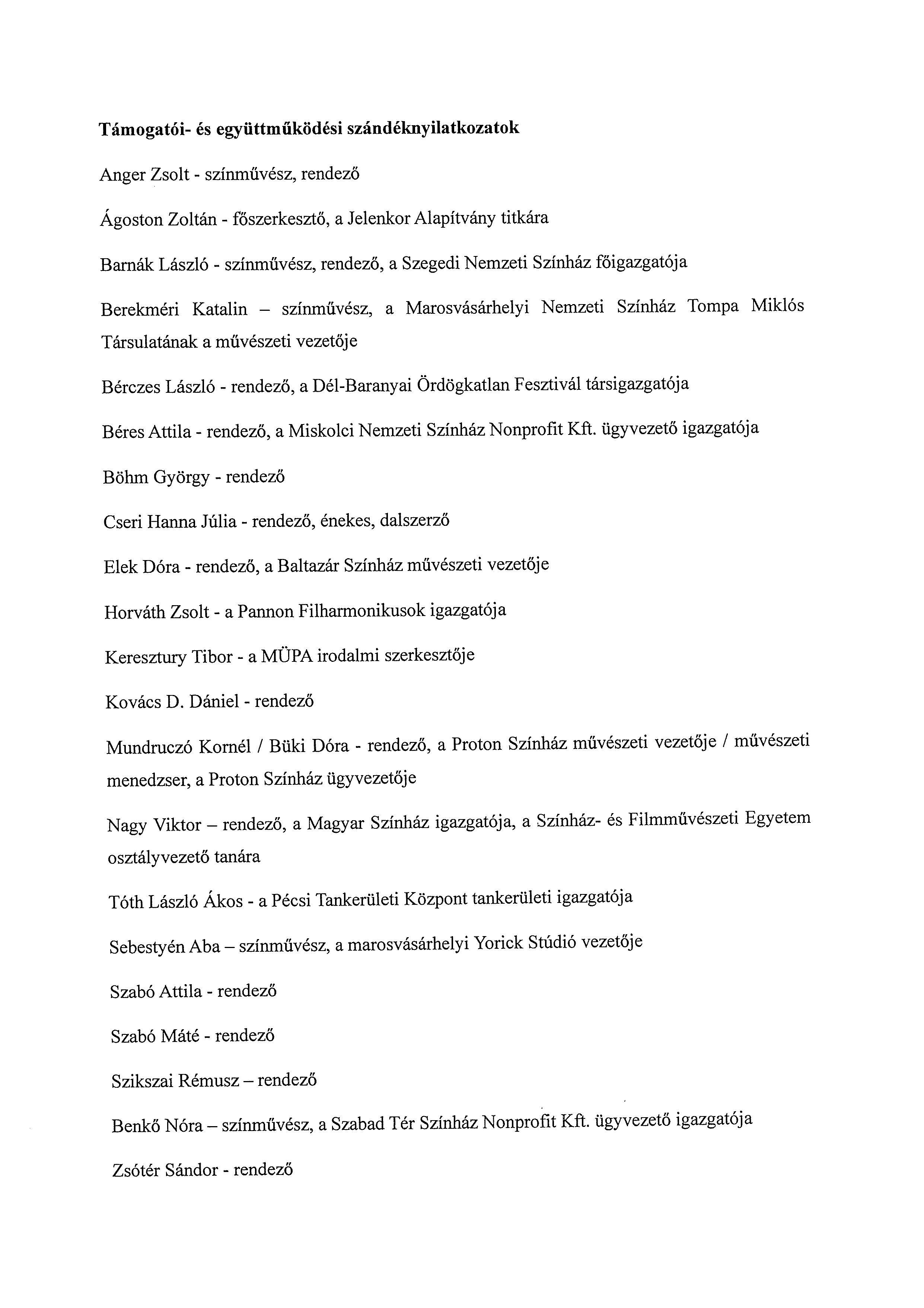 Különörömszámomra,hogymeghívhattamkétpécsiszületésűfiataltehetséget. Íme a névsor: Anger Zsolt, Bérczes László, Béres Attila, Böhm György, Cseri Hanna Júlia, Kovács D. Dániel, Nagy Viktor, Szabó Attila, Szabó Máté, Szikszai Rémusz, Zsótér Sándor, BaloghBenjáminés PásztorCsillaegyetemihallgatókSZFE