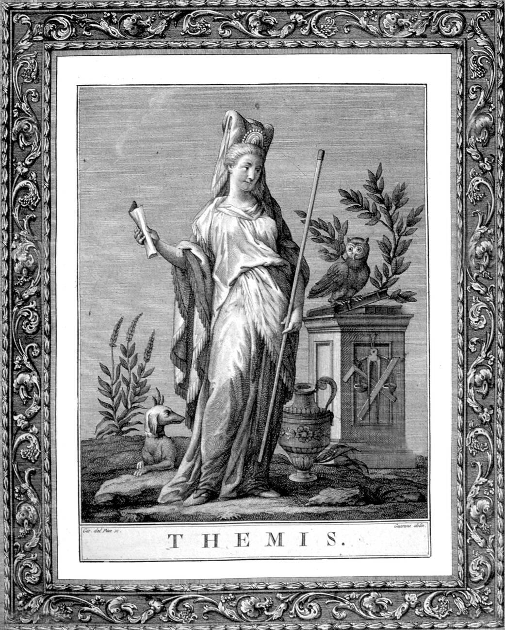 También fueron hijas suyas Irene y Diké, dos de las Horas. Diké también está relacionada con la representación de la divinidad de la Justicia. Te mis, la del ‘buen consejo’, era la encarnación del orden divino, las leyes y las costumbres. Cuando se le hace caso omiso, Némesis trae el justo y colérico castigo. Temis no era colérica: ella, ‘la de preciosas mejillas’, fue la primera en ofrecer a Hera una copa cuando volvió al Olimpo recurrent