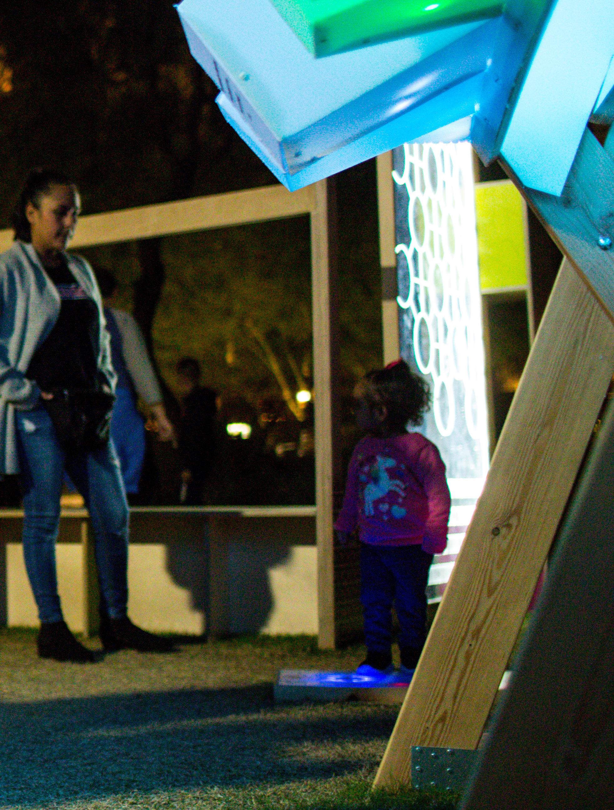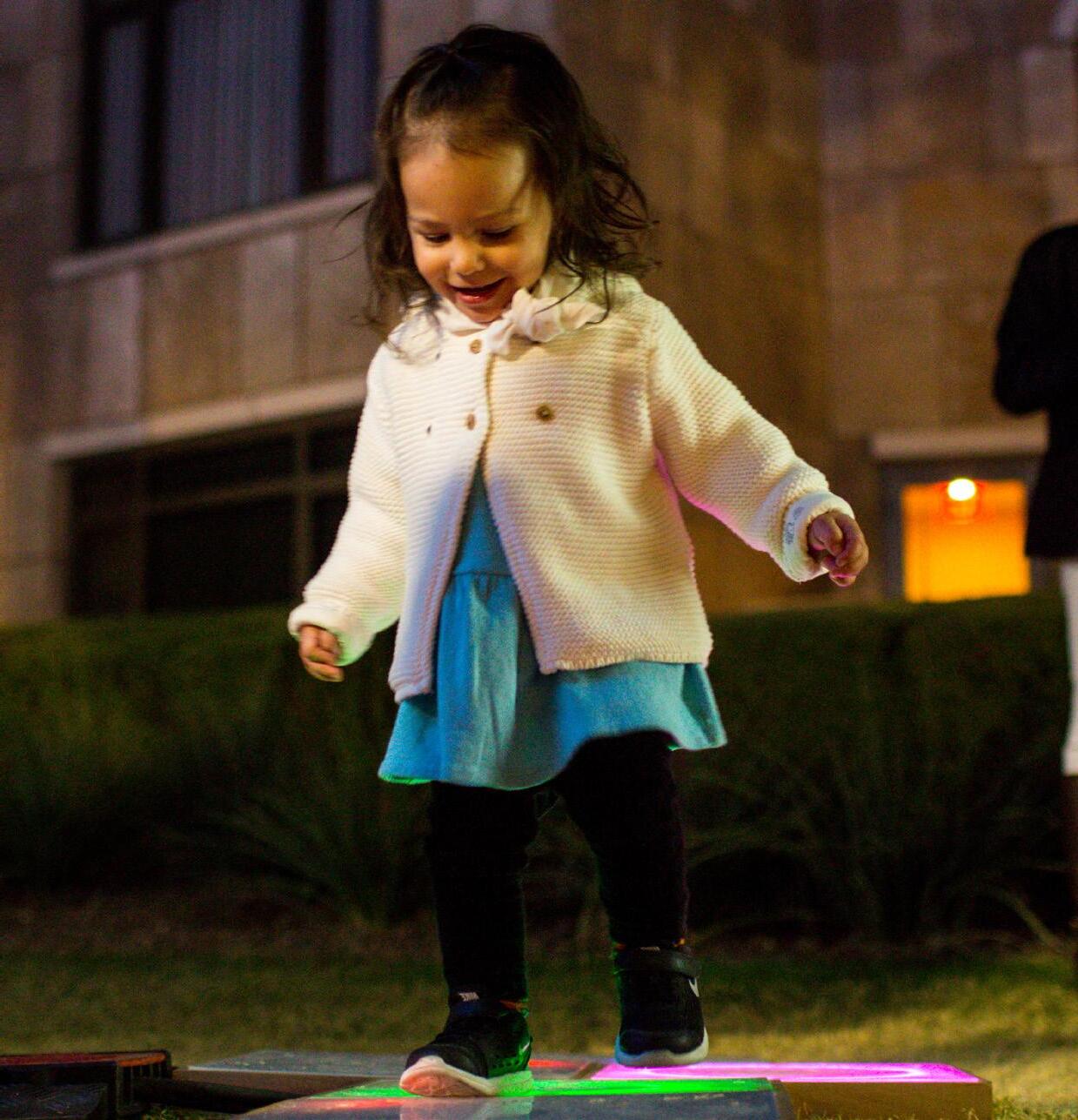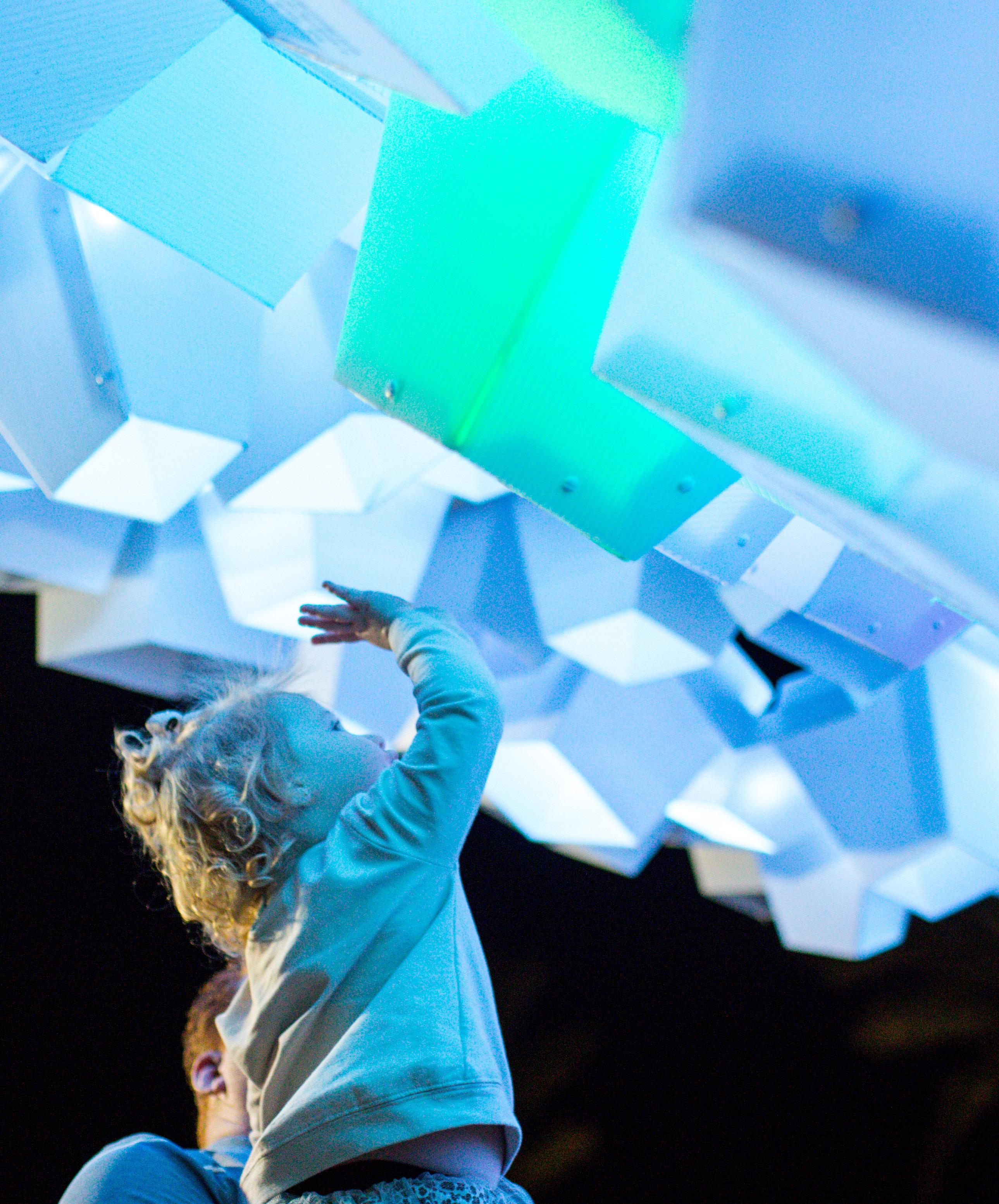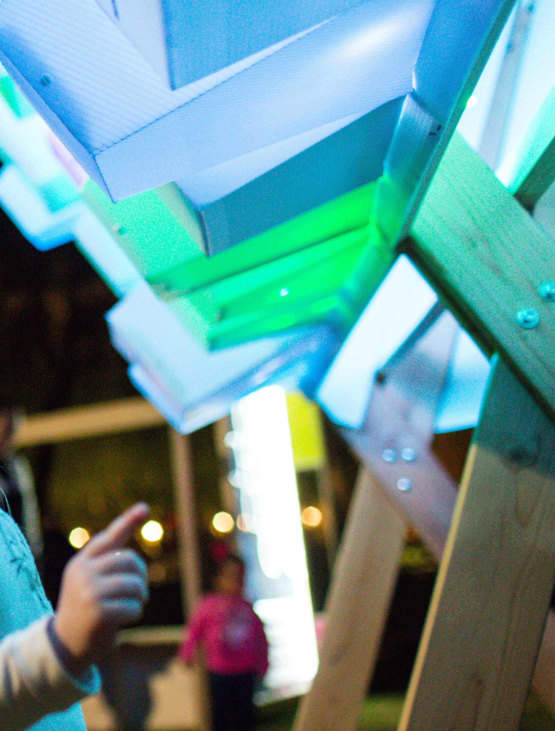 Cumulus engaged the public through the motionsensored interaction of light. Children ran and played around the installation.