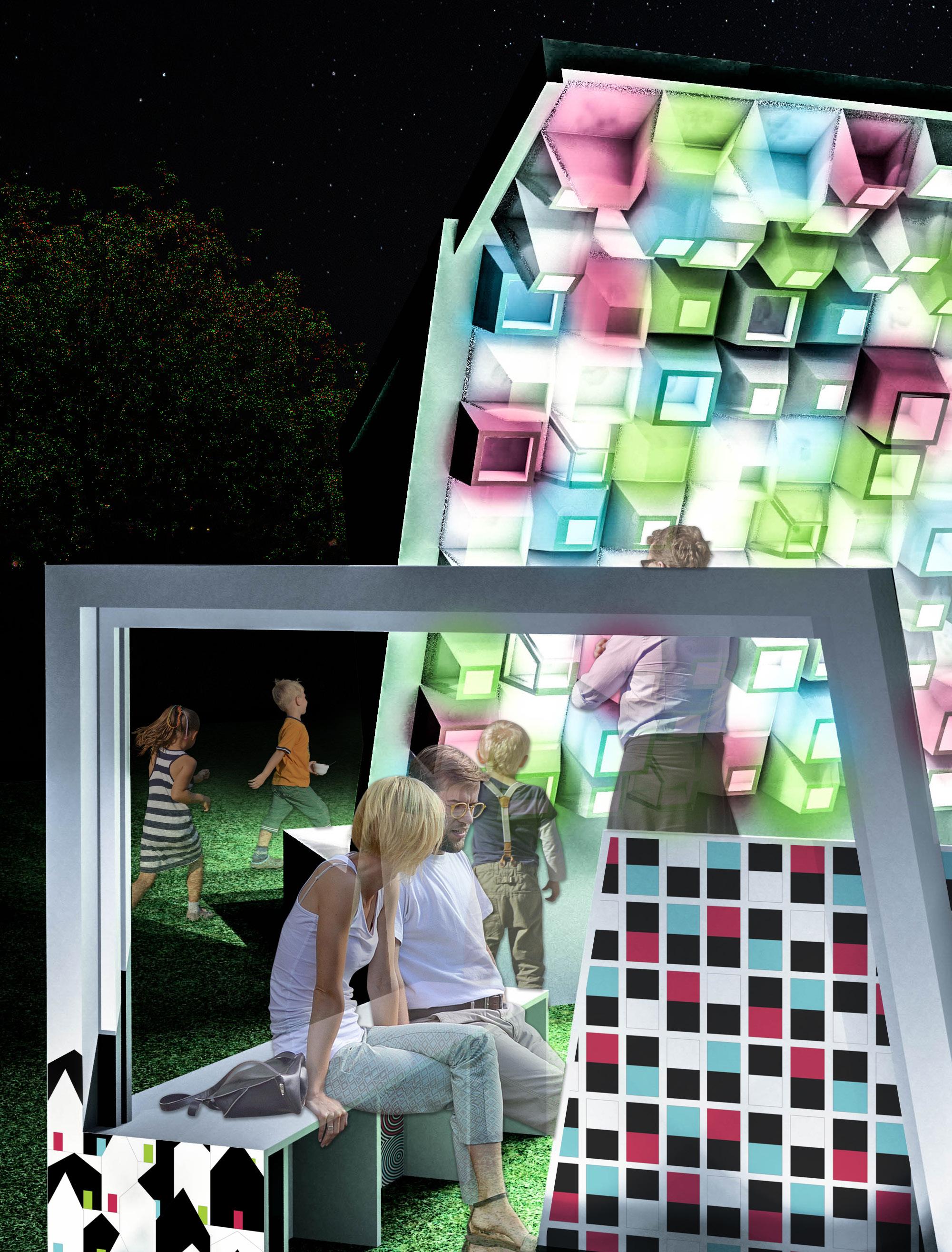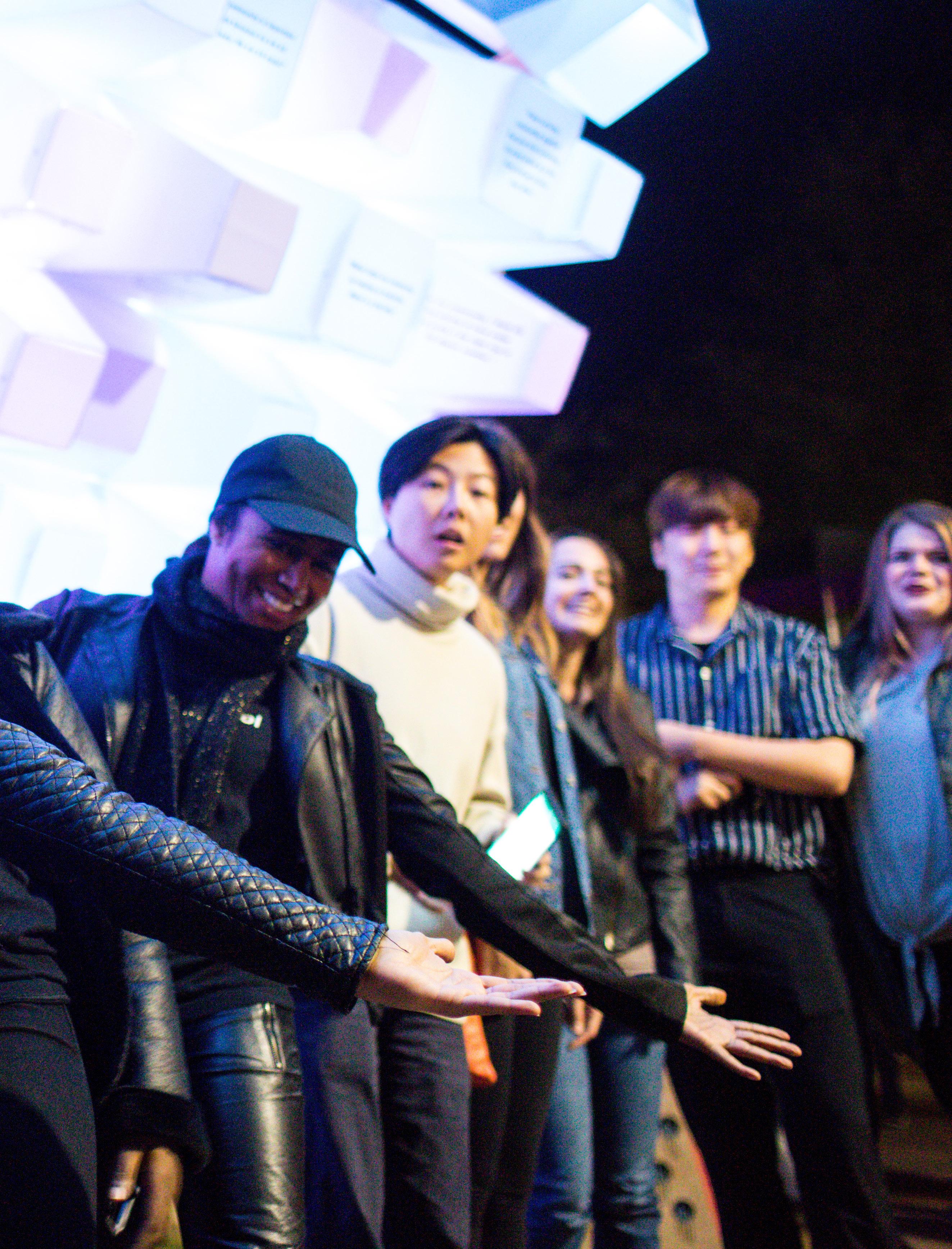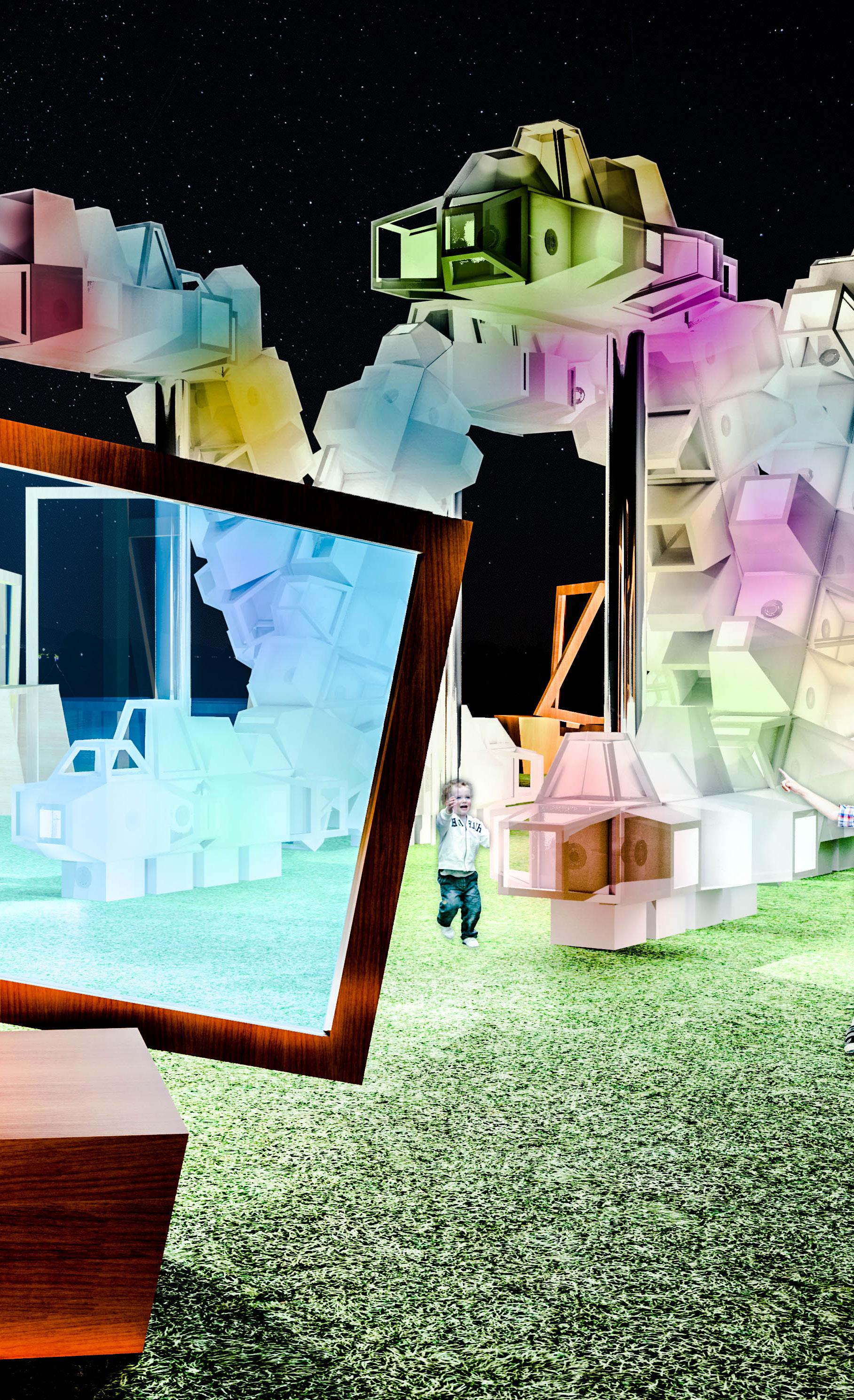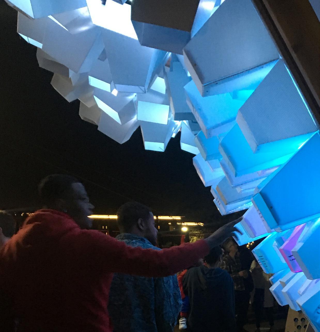 Cumulus engaged the public through the motionsensored interaction of light. Children ran and played around the installation.