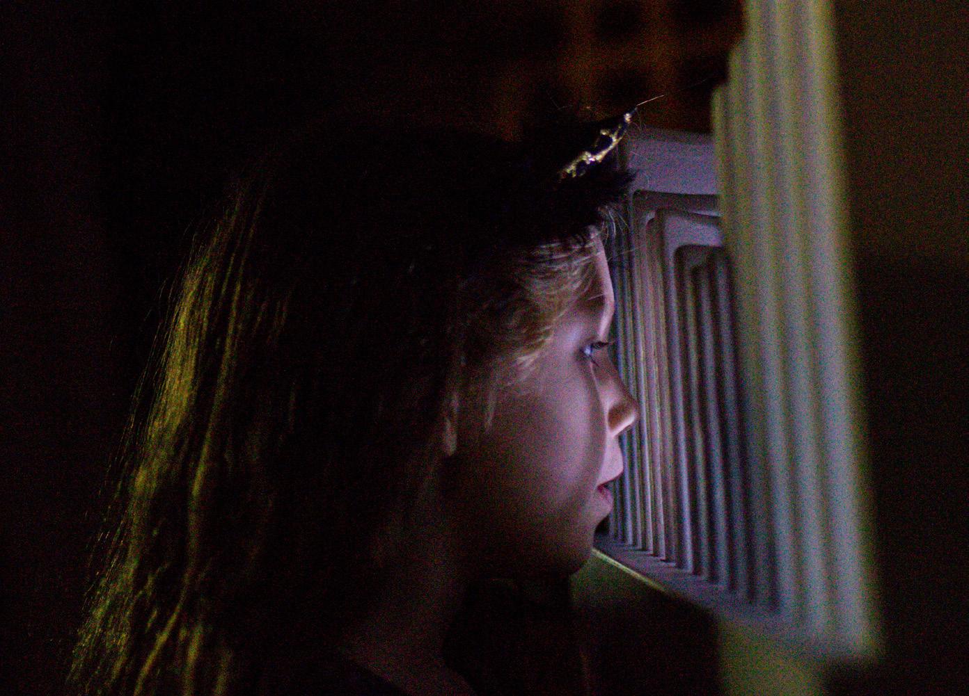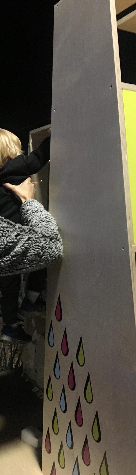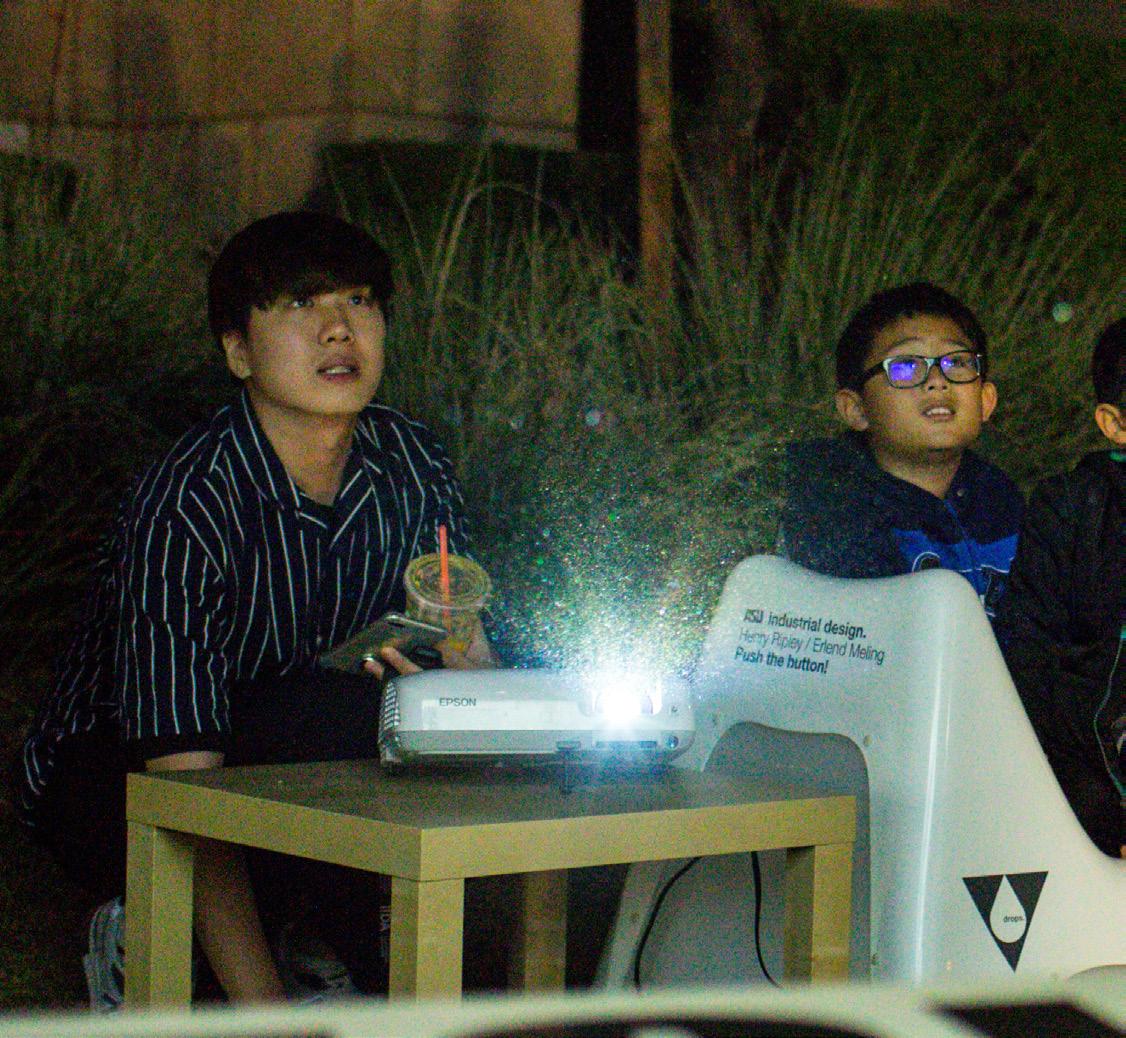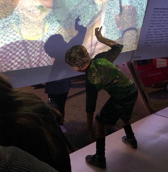 Children played with the light of the projector and cast shadows on the back of the cloud.