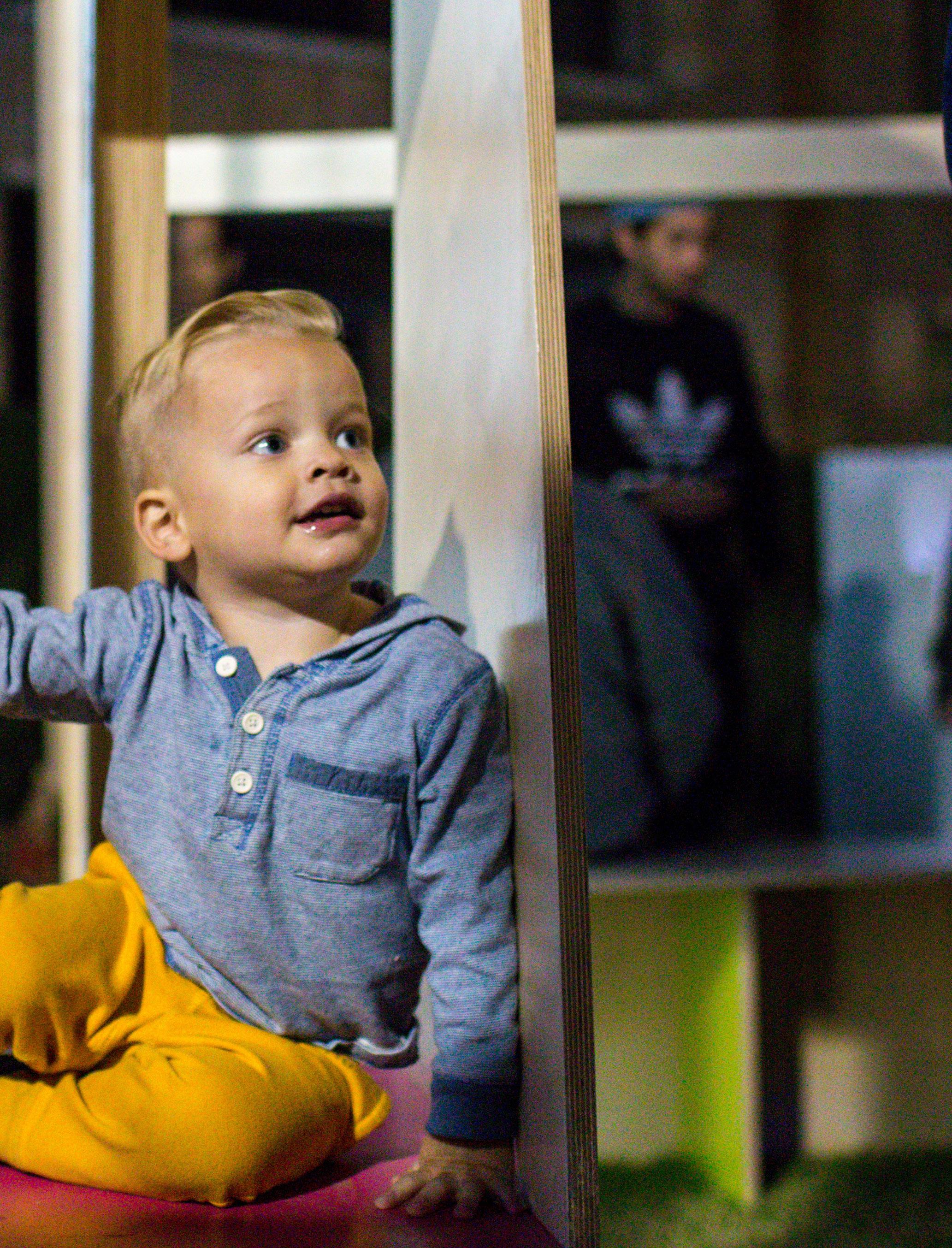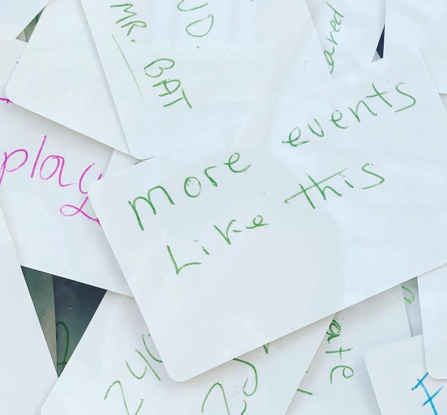 Kids played follow the leader through the bench tower. Answer in crowdsourcing: “More events like this.”