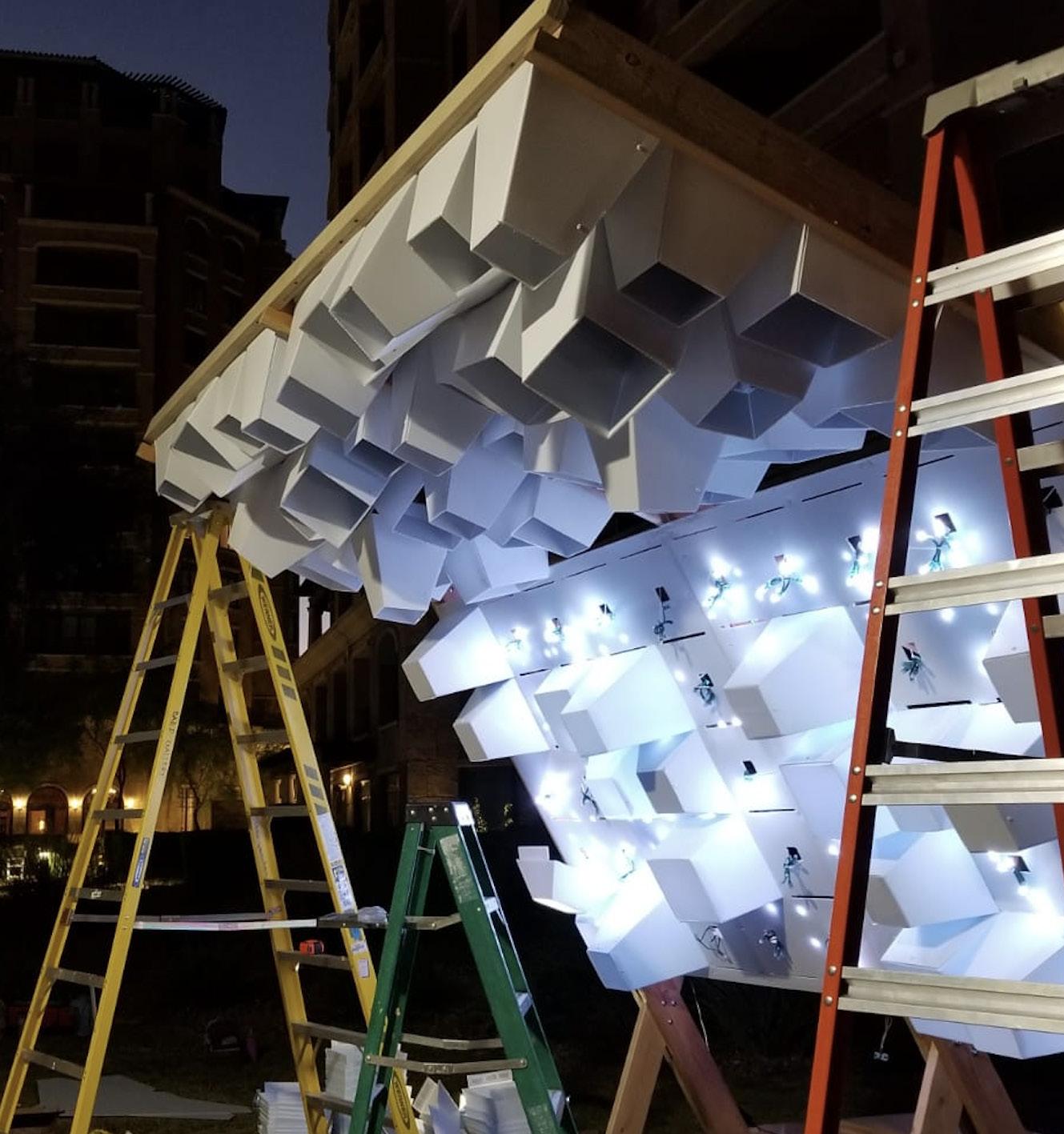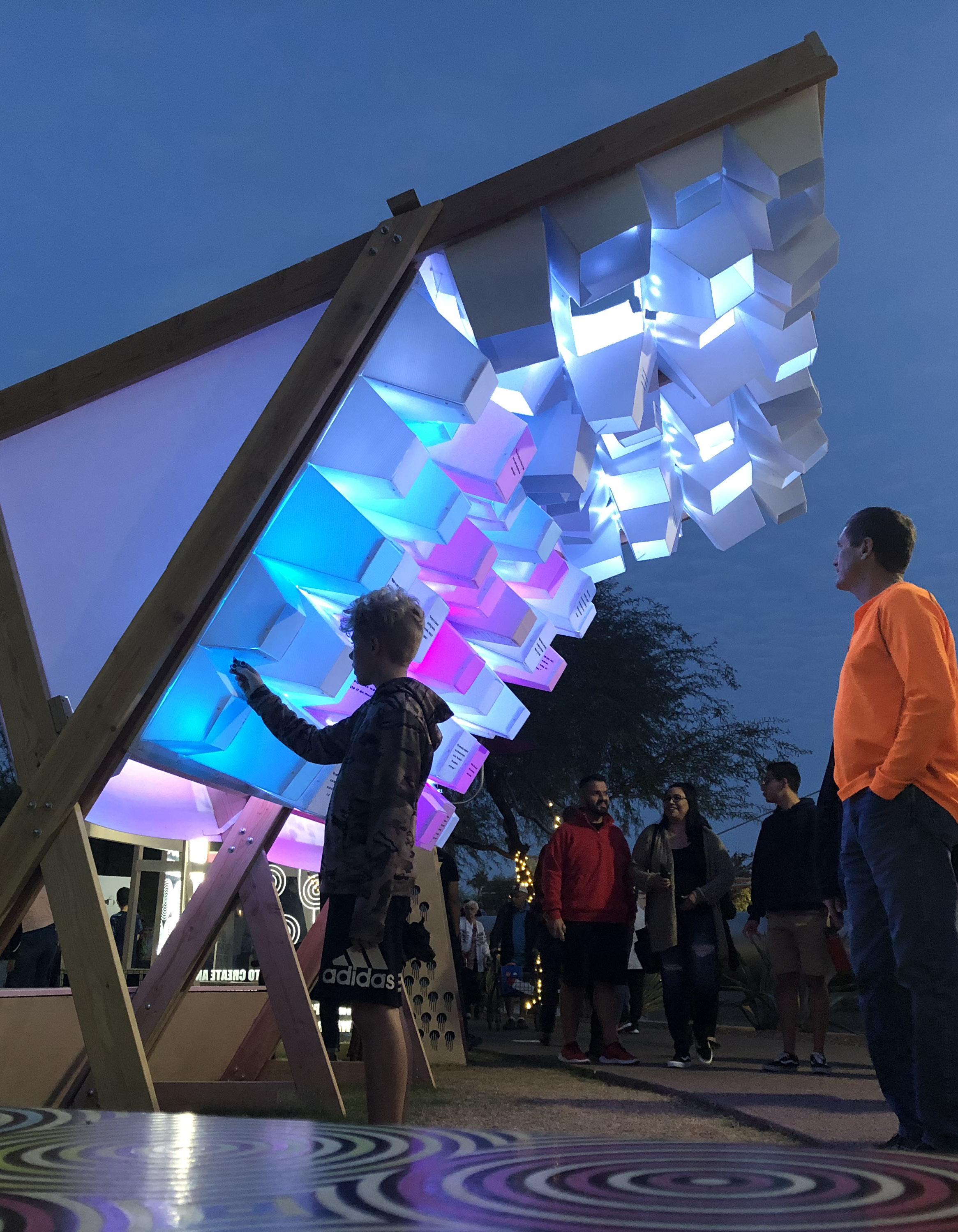 Following Canal Convergence, Cumulus found a permanent home at Jacob’s Mission Community Center in Mesa, Arizona. A new facility focused on providing supportive and preventative services to the foster and adoptive community, ASA Now’s Jacob’s Mission received two of the Cumulus benches and the cloud structure to assist in furnishing the new renovation project. Jacob’s Mission is expected to open their doors January 2019, and Cumulus will continue to inspire light interaction and community play for many years to come.