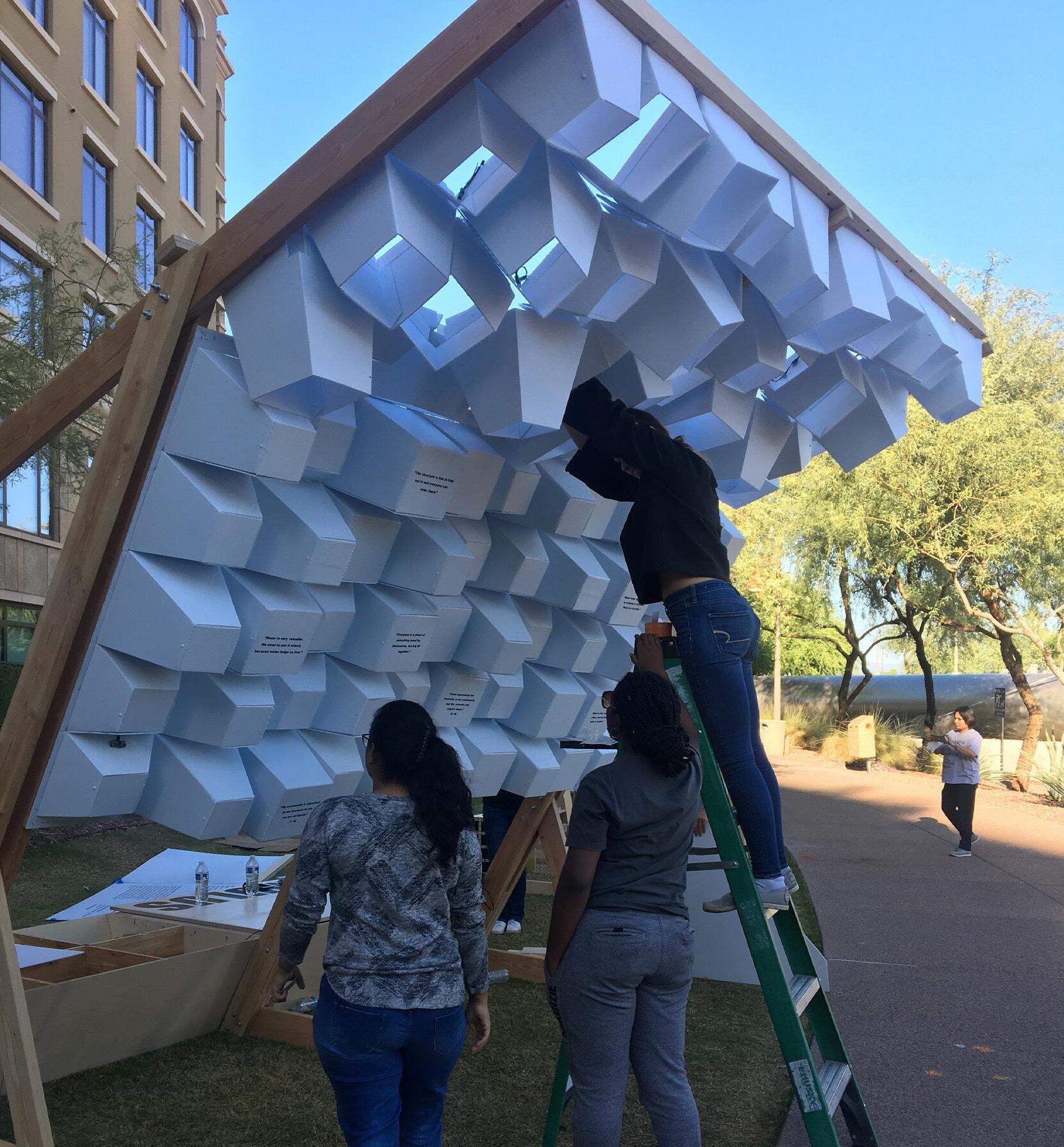 Our partner, Tonalea K-8 also received a Cumulus bench for their involvement in the project. We hope the Tonalea students can enjoy the work inspired by their contributions and remember the experiences afforded through the exposure to higher education. Moreover, Scottsdale Public Art’s new crowdsourcing piece will continue to engage the community across Scottsdale through temporary installations in public spaces.