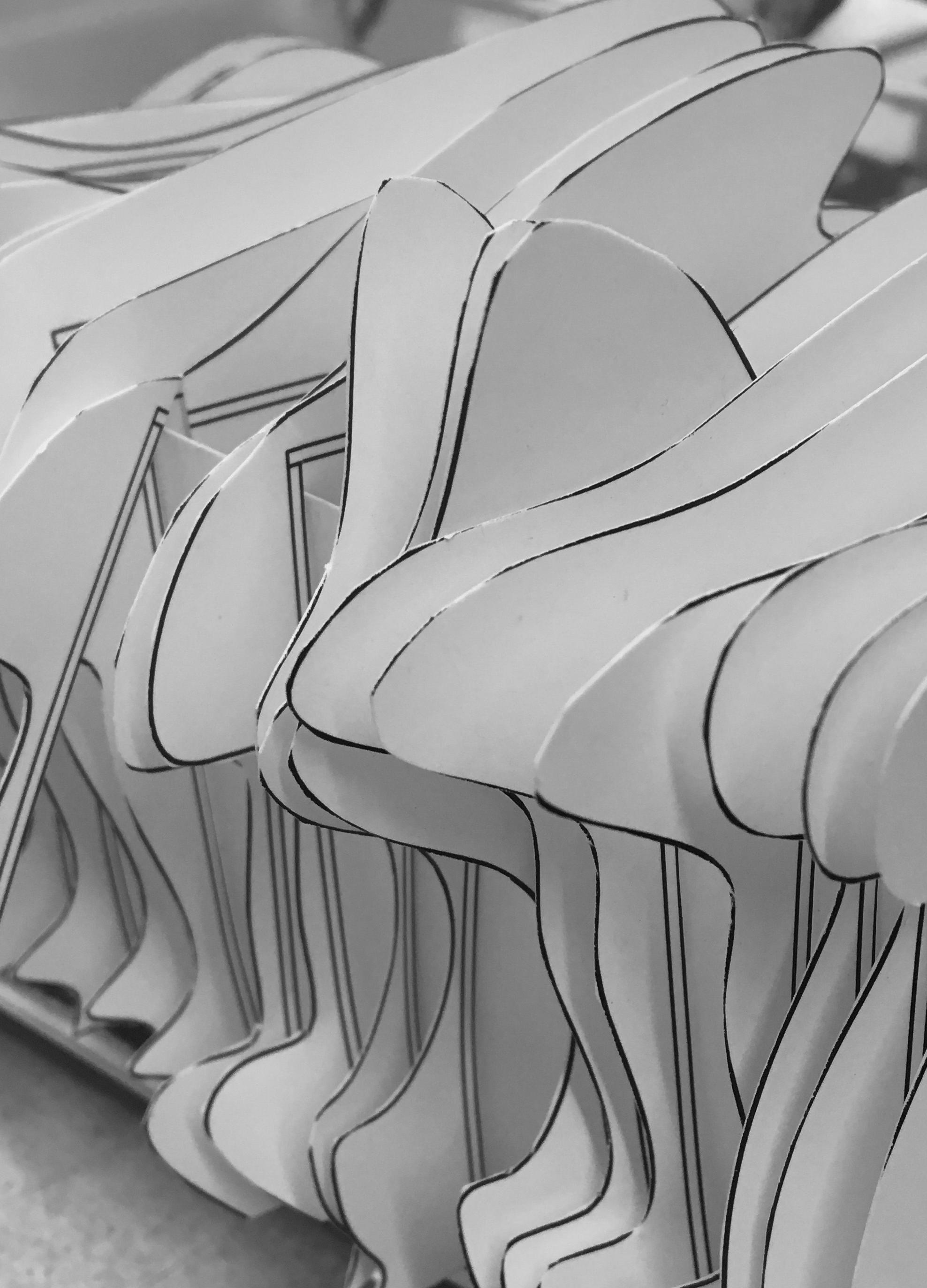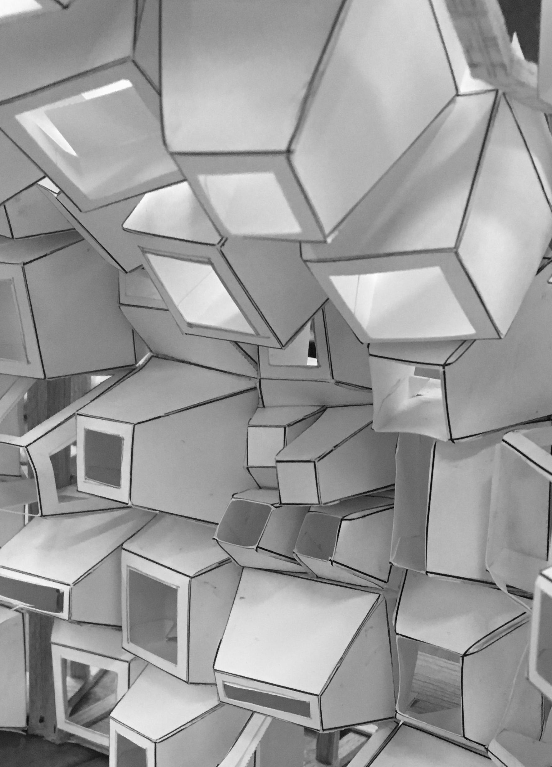 In order to participate in valuable interdisciplinary collaboration, our studio shared the opportunity of the design-build with undergraduate industrial design students. The goal of this partnership was to create a complete experience for visitors at Canal Convergence. We were responsible for developing a spatial experience where people interact with and within a created space. Our task included the integration of all elements on-site and the cohesive story associated with the installation as a whole. The industrial design juniors were tasked with generating micro-interactions between objects and the users. Between the thirty-four industrial design students, the project consisted of sixteen ‘objects’ each producing an unique interactive experience. We often referred to the relationship as ‘the hive and the bees’. Our work consisted of ‘the hive’, and the work of the industrial designers represented ‘the bees’. However, this analogy continued to transform as the concept underwent development. Together, we sought to produce a seamless installation through fluid communication and open-minded collaboration.