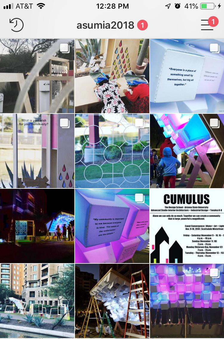 Throughout the semester, we documented the development of Cumulus through our website and Instagram account. Our website received weekly blog entries with updates on the project’s development, and Instagram provided a less formal platform for daily sneak peeks into the design process. Our Instagram received several tags and reposts throughout the semester from Scottsdale Public Art and The Design School at ASU.