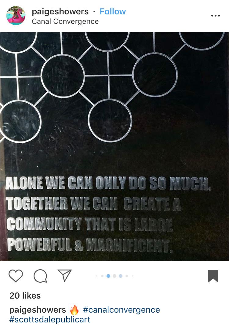 143 Canal Convergence | Water + Art + Light Nov. 9-18, 2018 | Scottsdale Waterfront Friday – Saturday (November 9 – 10, 16 – 17) 4 p.m. – 10 p.m. Sunday (November 11, 18) 2 p.m. – 8 p.m. Monday (Veterans Day, November 12) 2 p.m. – 8 p.m. Tuesday – Thursday (November 13 – 15) 4 p.m. – 8 p.m. 04