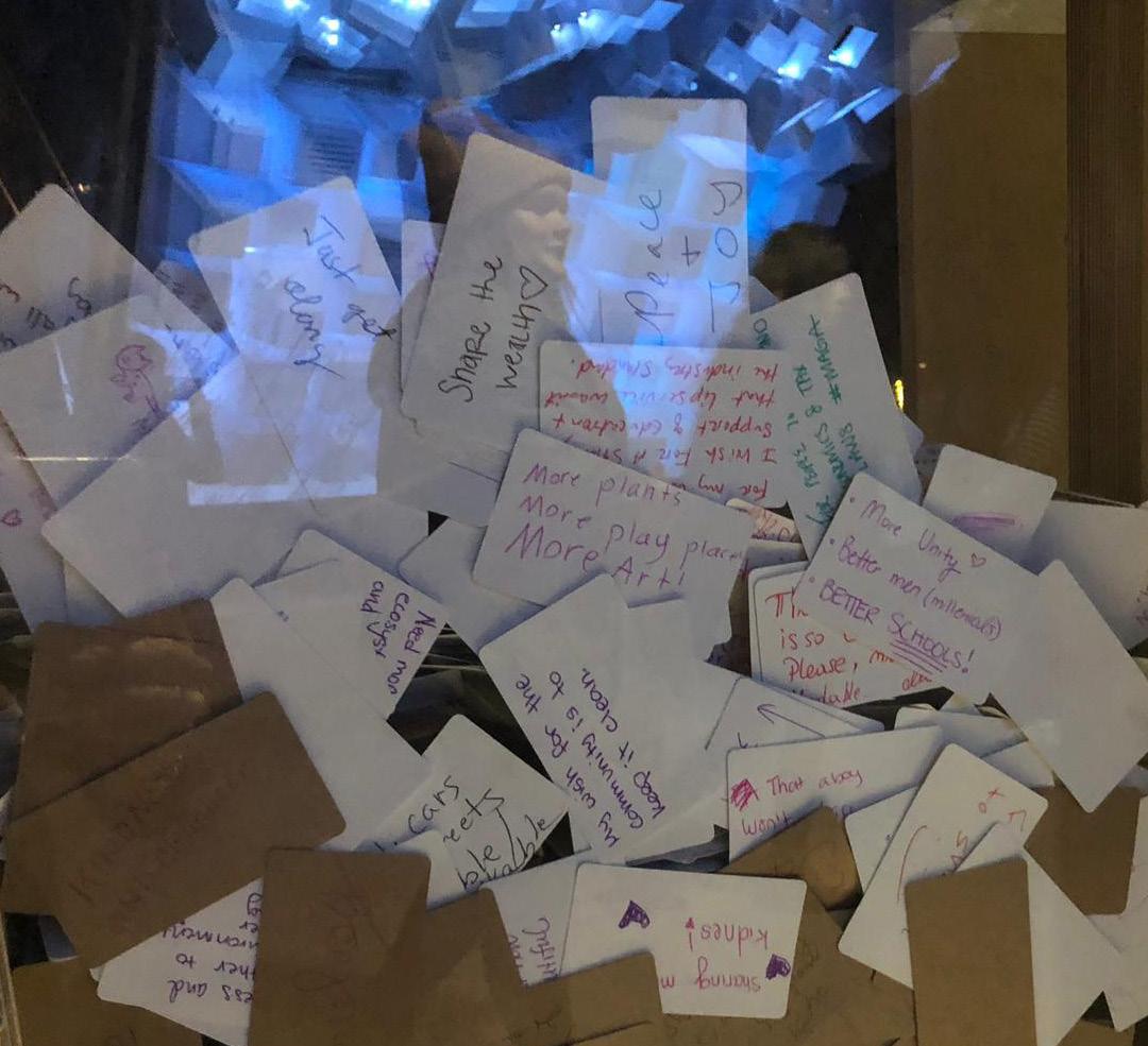 Many participants stopped to contribute their wishes through the crowdsourcing piece.