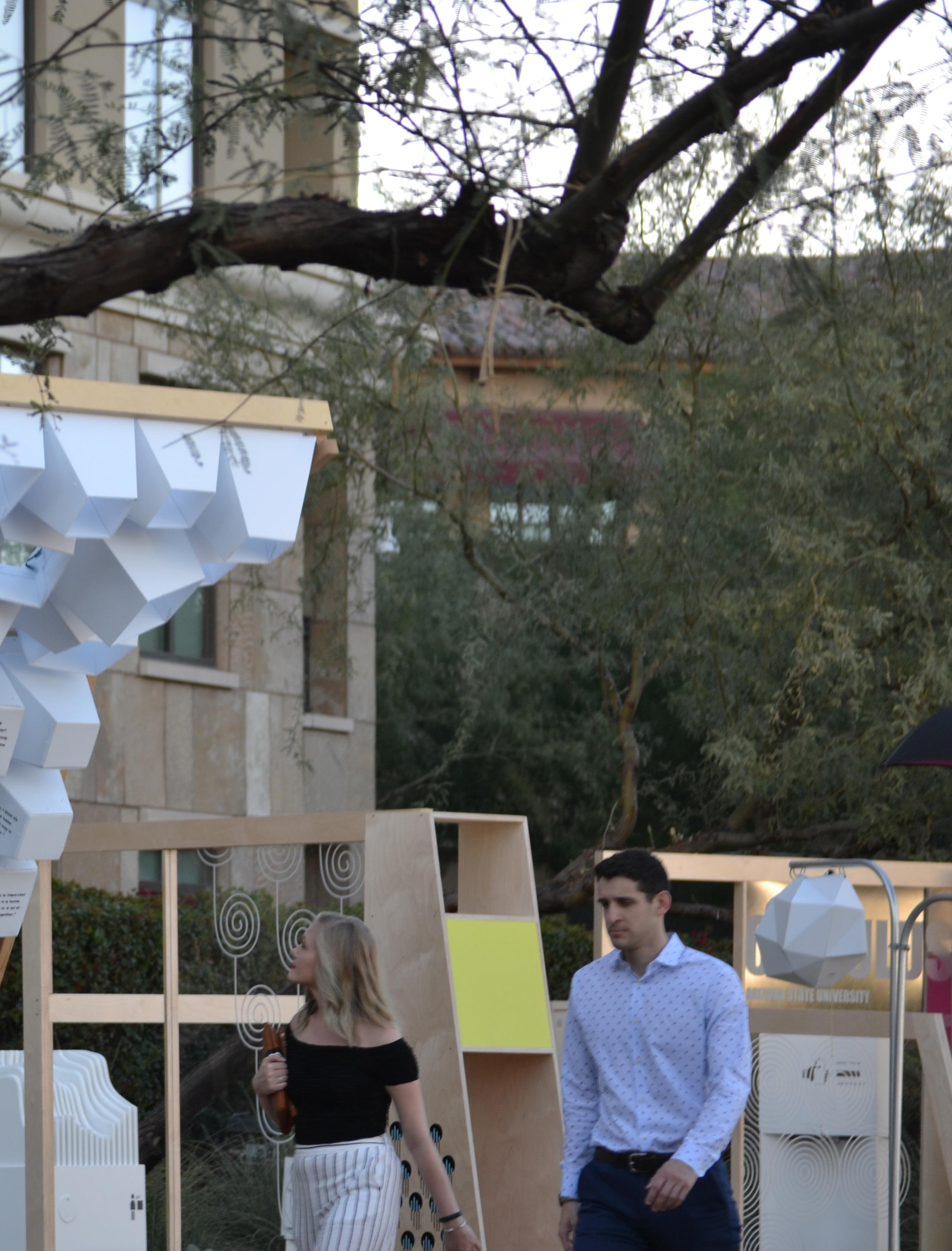 Assistant Professor Milagros Zingoni and Clinical Assistant Professor Collin Smith assisted in promoting the Cumulus installation through a radio interview with KJZZ. The interview discussed our partnership with the students of Tonalea K-8 and the integration of the students’ work throughout the installation. The interview also touched on the type of sensory and experiential atmosphere visitors can expect when visiting Cumulus at Canal Convergence.