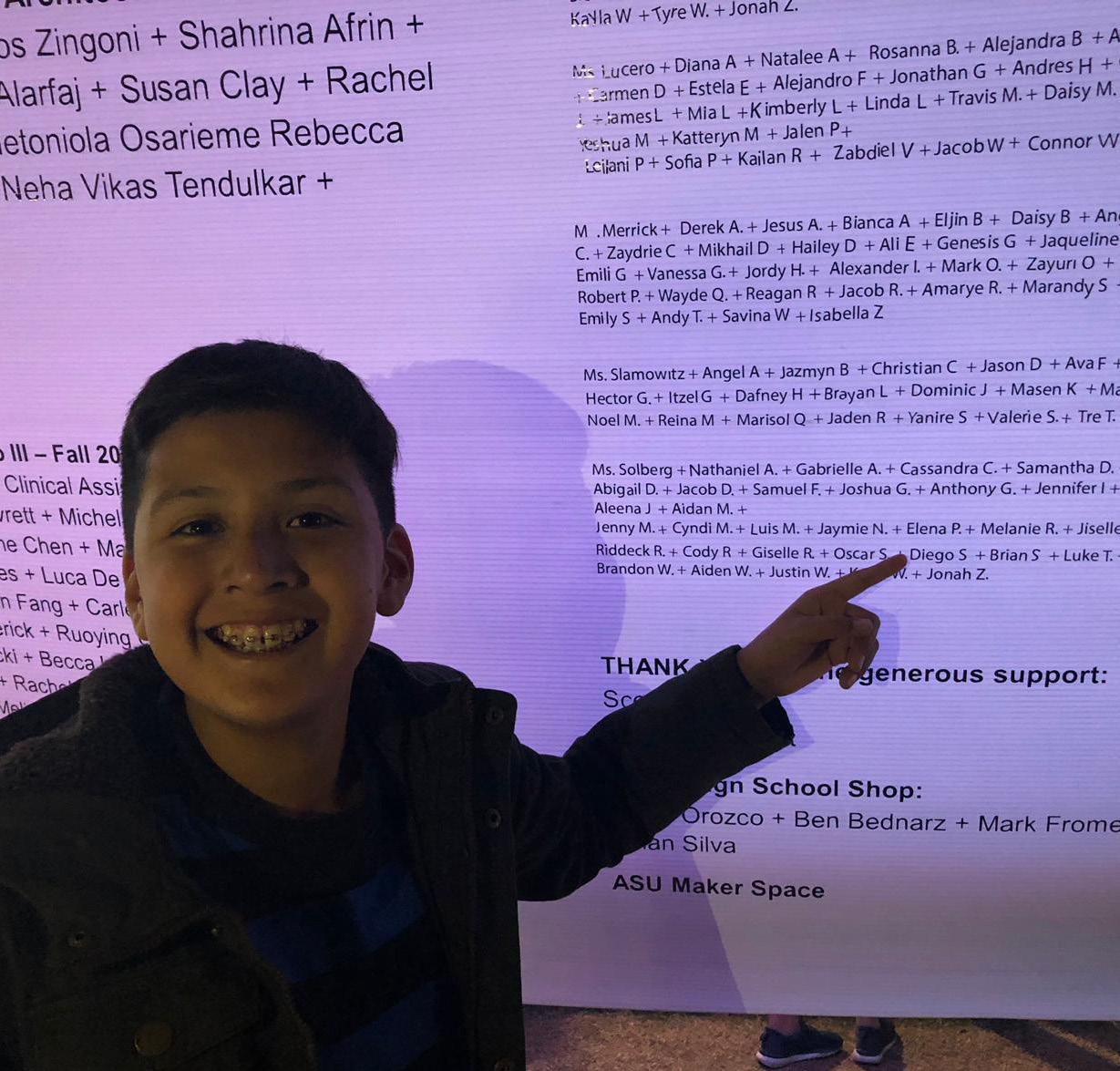 A Tonalea participant, Diego, from Ms. Solberg’s class visited the completed project.