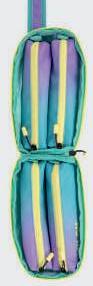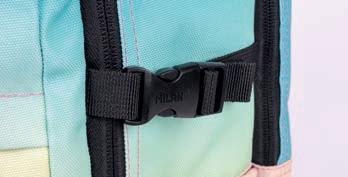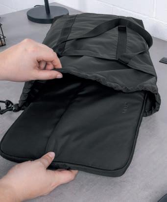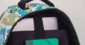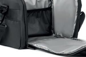 Interior forrado: bolso em rede com fecho de correr e tas de xação elásticas. Tecido interior 100% poliéster