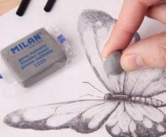 Gomma morbida in caucciù sintetico, più essibile e più dura. Per cancellare una vasta gamma di matite di gra te, su qualsiasi tipo di carta. Diverse intensità di cancellazione.