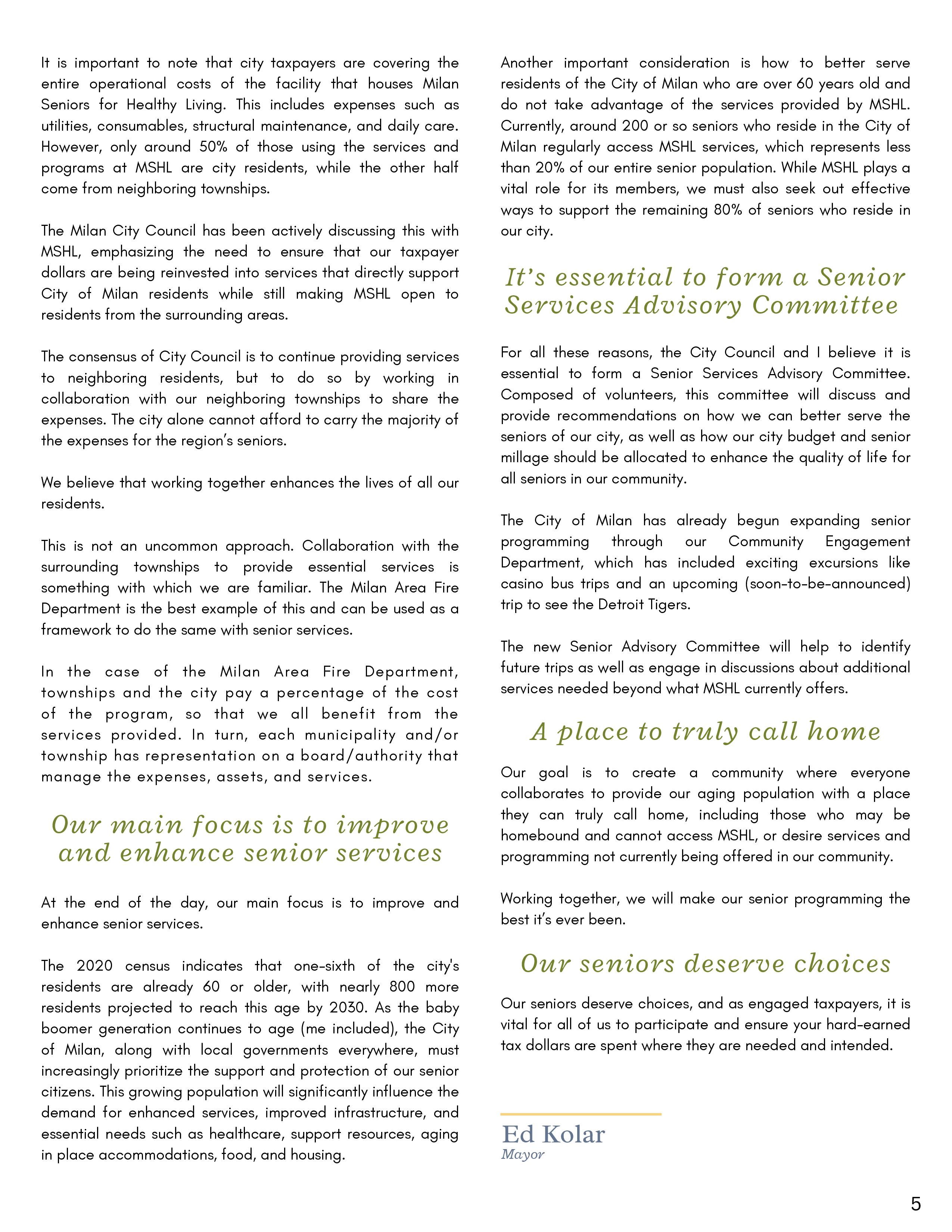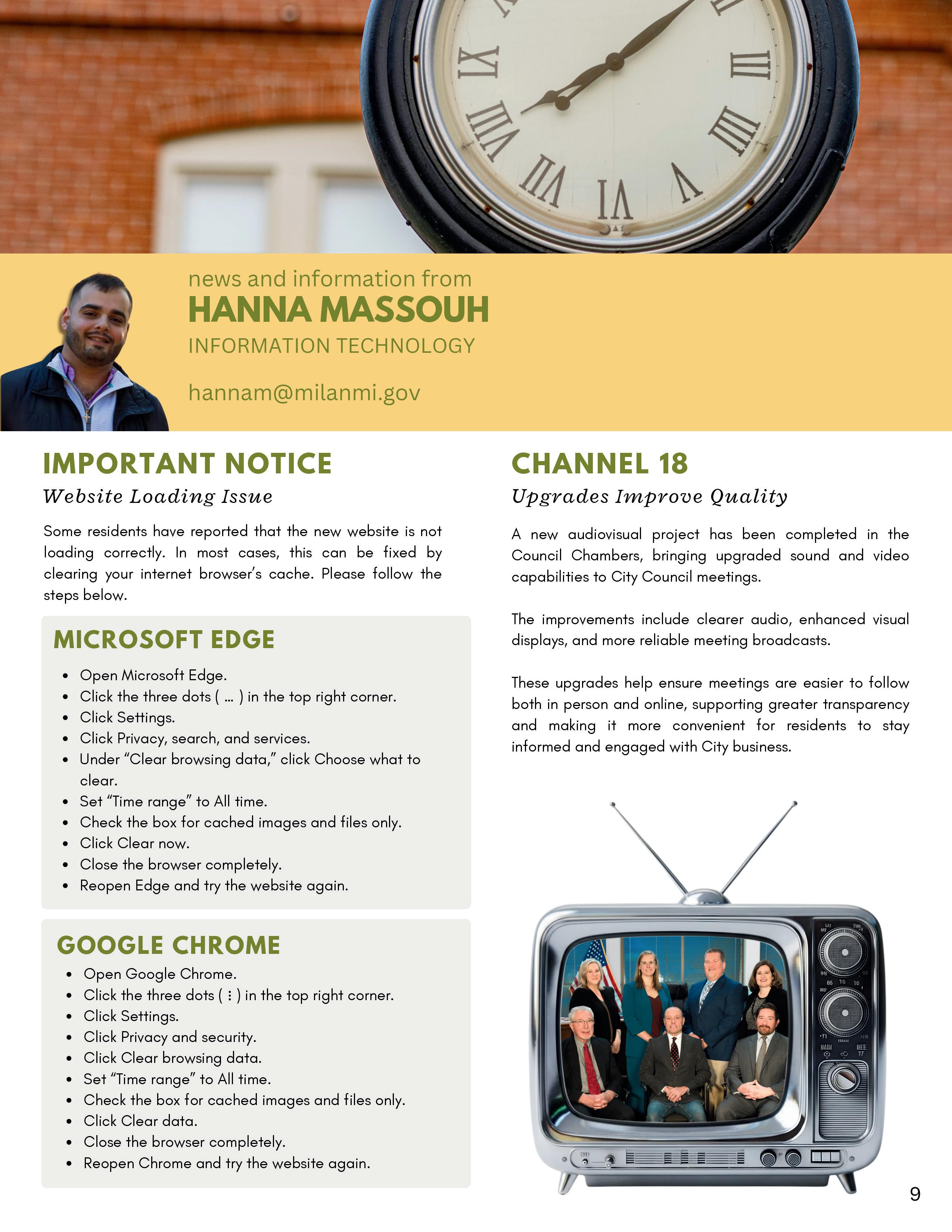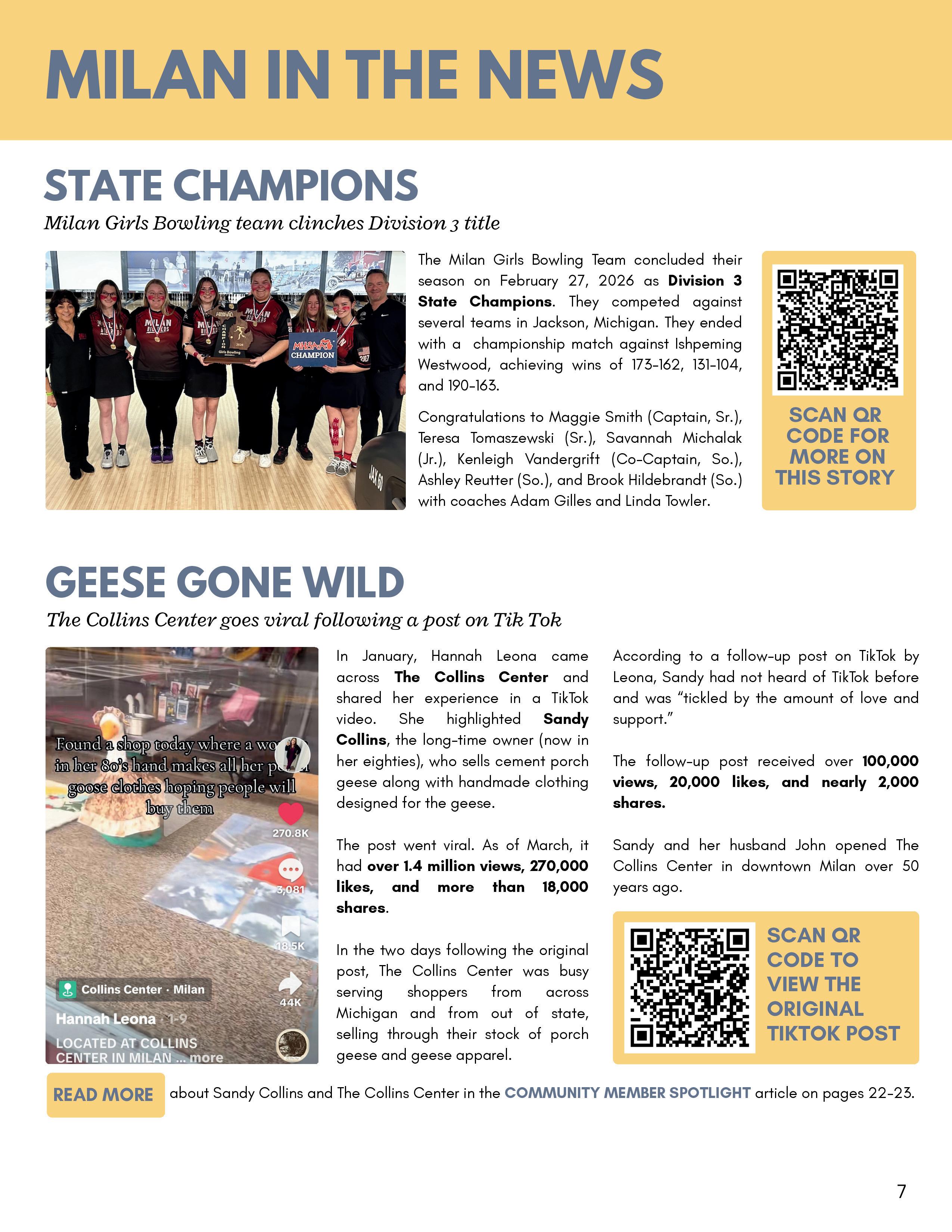 The Connection is the City of Milan’s quarterly news and information resource, delivering local events, city services updates, parks & recreation programs, public meeting schedules, construction and roadwork notices, utility and snow/ice season tips, budget highlights, and community development news. Ideal for residents, business owners, and visitors wanting practical seasonal guidance, volunteer and program opportunities, and ways to engage with city officials and services.