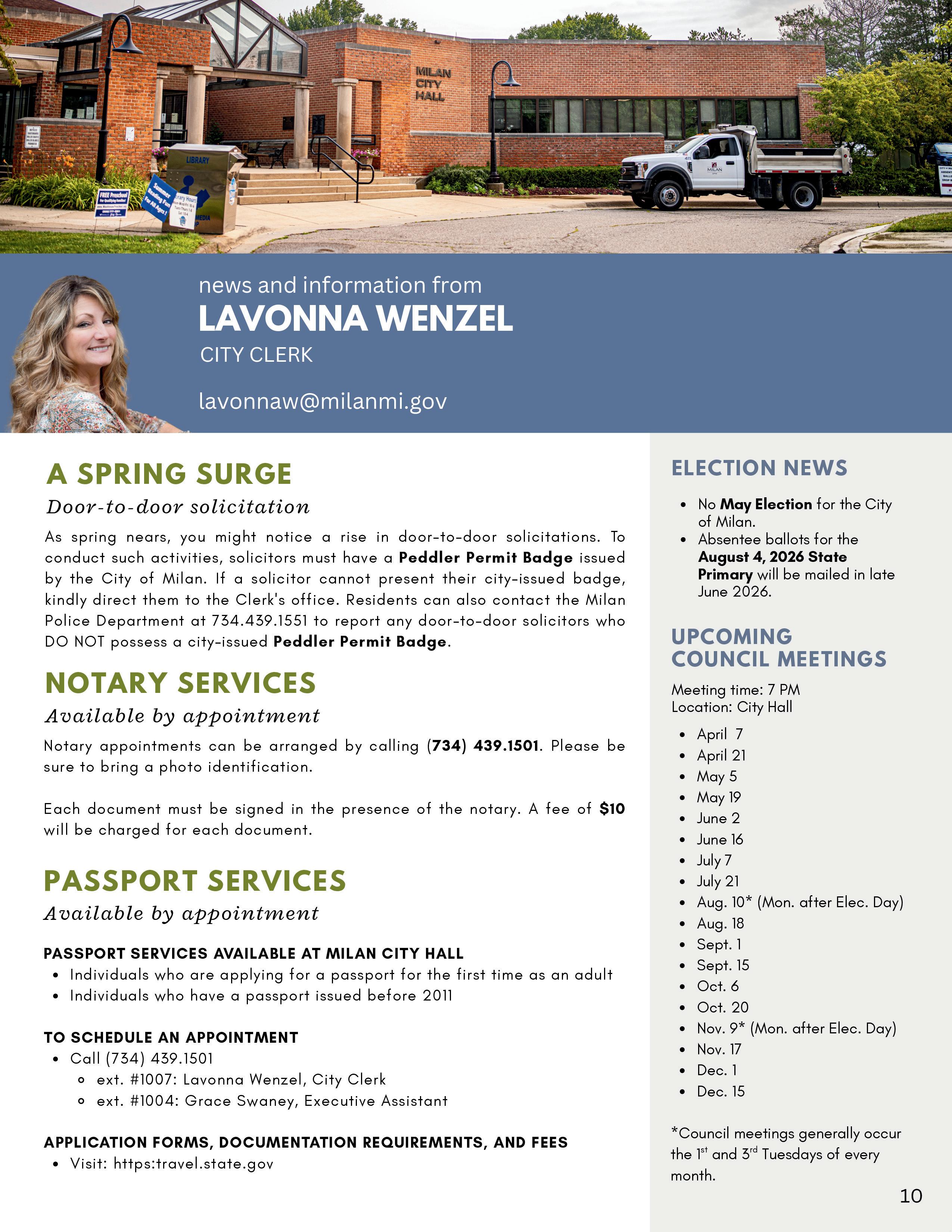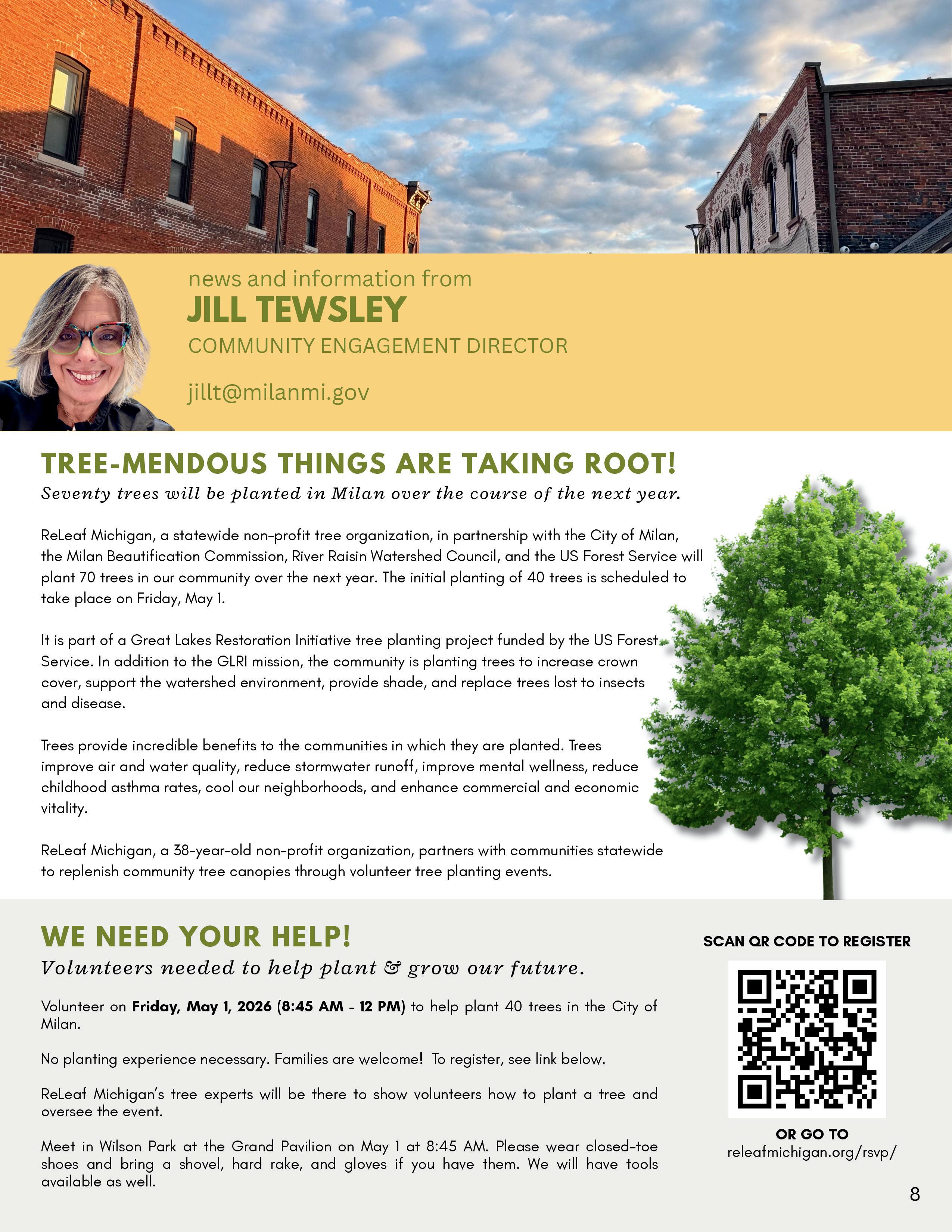 City of Milan newsletter: The Connection – Spring 2026. City of Milan news, updates, events and announcements for Milan, Michigan residents.