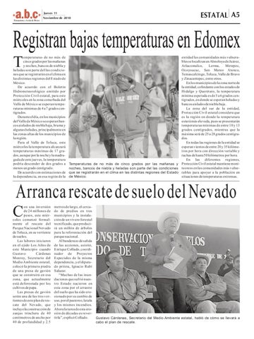 on una inversión de 24 millones de pesos, este miércoles comenzó formalmente el rescate del Parque Nacional Nevado de Toluca, en su vertiente de suelos. Las labores iniciaron en el ejido Los Ailes de este Municipio cuando Gustavo Cárdenas Monroy, Secretario del Medio Ambiente estatal, colocó la primera piedra de una presa de gavión que se construirá en esa zona, que actualmente está deforestada por los cultivos de papa. Las presas de gavión serán una de las tres vertientes de este plan de rescate del Nevado, que incluye la construcción de zanjas trinchera de 40 centímetros de ancho por 40 de profundidad y 2.5