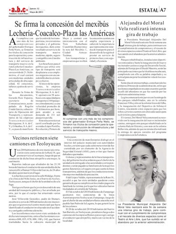l cumplirse con uno más de los compromisos del gobernador Enrique Peña Nieto, se firmaron los títulos de concesión para la operación y construcción de infraestructura y del servicio de transporte masivo en la ruta Lechería-CoacalcoPlaza Las Américas, en un recorrido de 21.3 kilómetros, el cual contará con modernas unidades articuladas de alta capacidad, 42 estaciones, talleres y patios de servicio. Durante la firma de los documentos, Gerardo Ruiz Esparza, secretario de Comunicaciones, acompañado de Rogelio Conde García, subsecretario de Operación del Transporte, y representantes de las empresas Transcomunicador Mexiquense, S. A. de C. V. y Urbanbus, S. A. de C. V., se puso de manifiesto