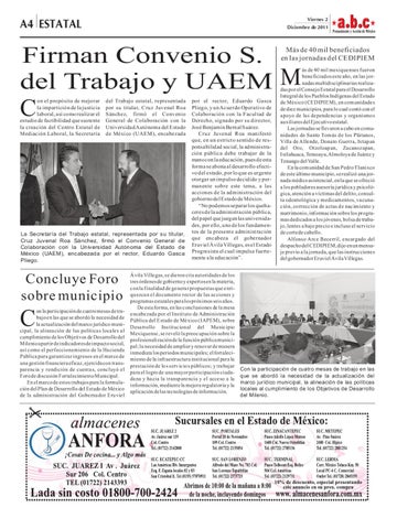 del Trabajo estatal, representada por su titular, Cruz Juvenal Roa Sánchez, firmó el Convenio General de Colaboración con la Universidad Autónoma del Estado de México (UAEM), encabezada