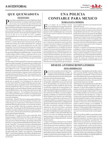 simulación; y las legislaciones locales, incluida la reciente del DF, están por debajo de la incompleta norma federal. 3) Que se tome en serio el problema de los estereotipos discriminatorios en los medios. Éstos no sólo expresan la discriminación existente, sino que con frecuencia la promueven y escalan. 4) Que las necesarias legislaciones sobre derechos indígenas tengan contrapesos que, en especial, eviten la discriminación sobre las mujeres, los niños y los disidentes religiosos y sexuales en los grupos tradicionales. Los usos y costumbres pueden convertirse en un cobijo para el dominio discriminatorio. 5) Que se avance en la constitucionalización explícita de la laicidad del Estados. 6) Que se ponga un alto a la oleada conservadora que apunta a criminalizar el ejercicio de la soberanía de las mujeres sobre su cuerpo y su sexualidad. 7) Que termine de una vez la cínica práctica de las juanitas. 8) Que se desarrolle un genuino programa de accesibilidad urbana y arquitectónica al servicio de las personas con discapacidad. 9) Que los poderes públicos entiendan que la diversidad moral y sexual del país no sólo llegó para quedarse, sino que no hay en razón alguna para restringirla o reconducirla. 10) Que los jueces en general, y la Corte en particular, estrenen en serio sus atribuciones de actuar jurídicamente contra la discriminación. 11) Que los gobernantes del país dejen de confundir la filantropía (opción privada) con la garantía de no discriminación (obligación constitucional) y que entiendan que el cheque que suelen dar a Teletón (con fondos públicos) no los exime de sus deberes. 12).