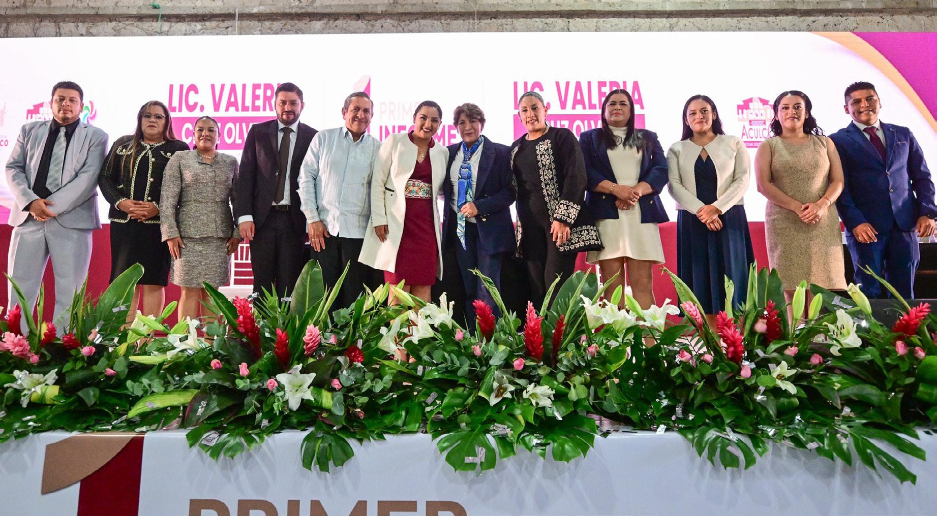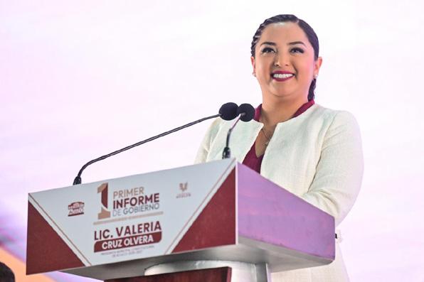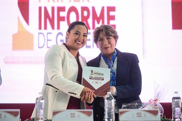 • Delfina Gómez asistió al Primer Informe de la Presidenta Municipal, Valeria Cruz Olvera, donde informó que se han entregado más de tres mil tarjetas Mujeres con Bienestar