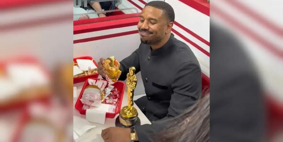 Michael B. Jordan celebró su Oscar con hamburguesas y papas en In N Out