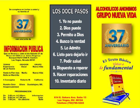 El Grupo “ Las Vegas “ de habla hispana, se fundó en la ciudad de los casinos formalmente a finales de 1960. Previo a su apertura , los pocos latinos que buscaban un lugar de recuperación, asistían a grupos anglosajones. La barrera del idioma era un obstáculo gigante, ya que el mensaje de "corazón a corazón" se perdía en la traducción.