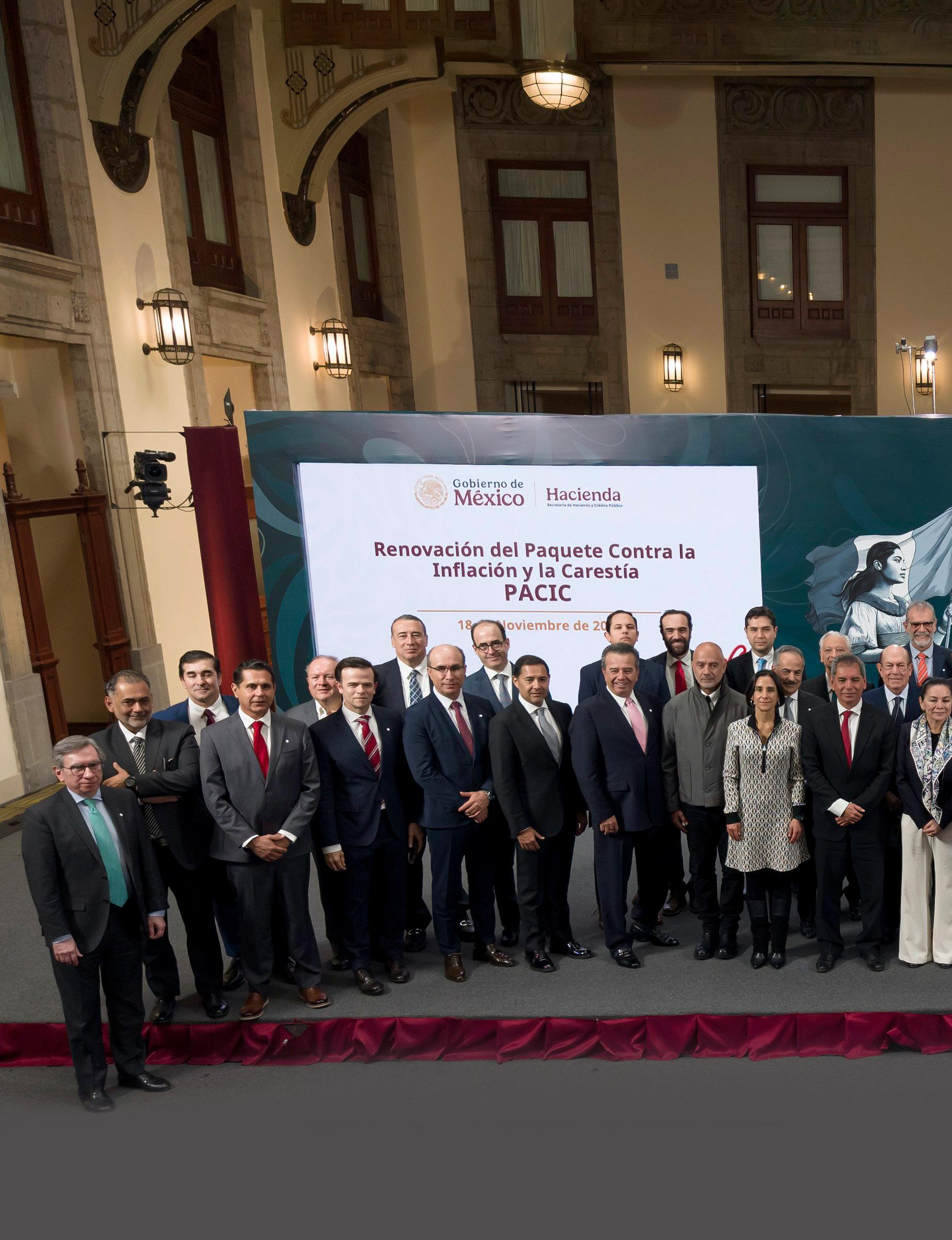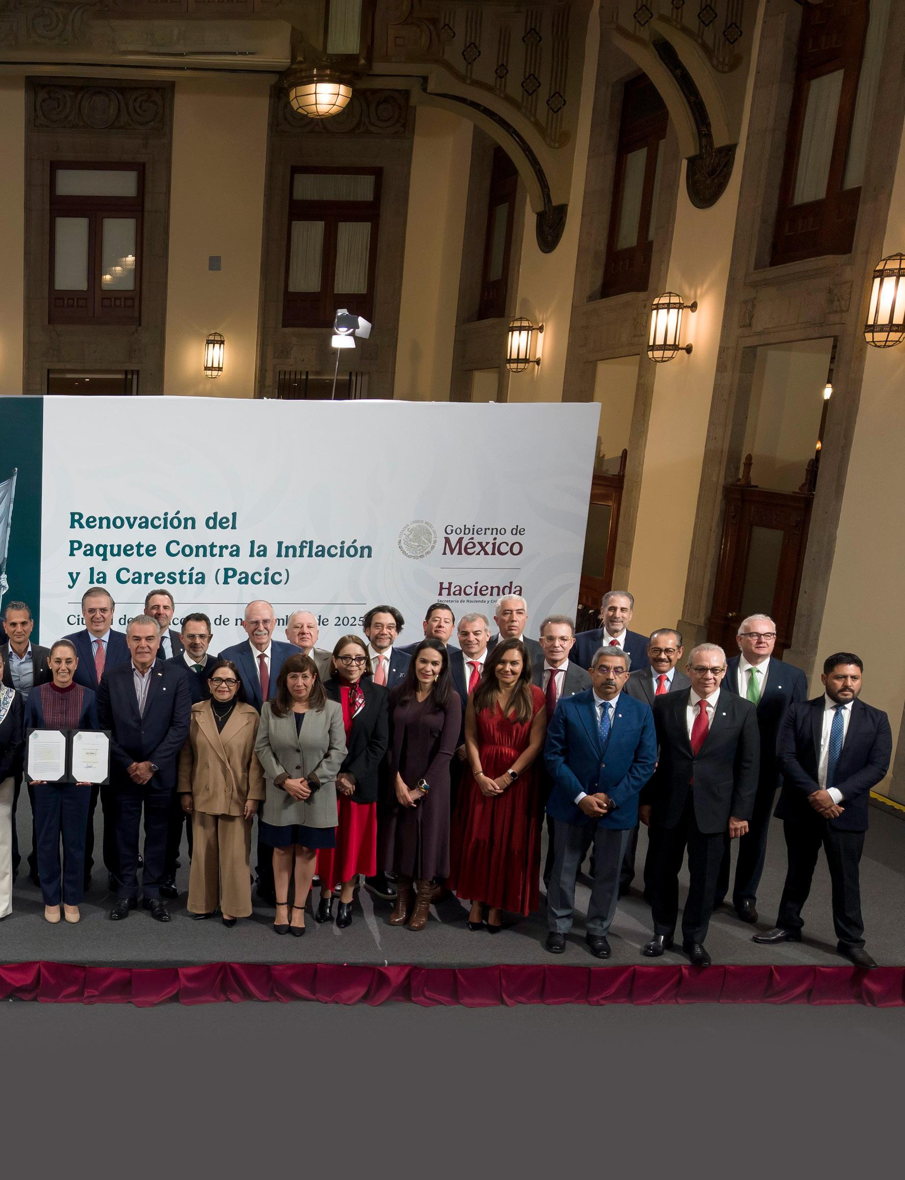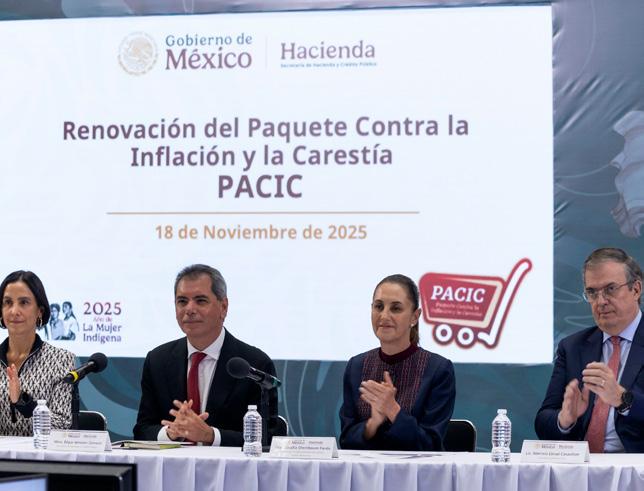 La presidenta Claudia Sheinbaum Pardo y el titular de la Secretaría de Hacienda y Crédito Público (SHCP), Édgar Amador Zamora celebraron la renovación del Paquete contra la Inflación y la Carestía (Pacic) en Palacio Nacional. Sheinbaum Pardo y Amador Zamora agradecieron a las tiendas por haber fijado el precio de la canasta básica de 24 productos en 910 pesos. La Mandataria federal destacó este acuerdo “muy importante” entre el gobierno y la iniciativa privada para el beneficio de las familias: “Es factible hacerlo y hay voluntad”. El presidente del Consejo Coordinador Empresarial (CCE), Francisco Alberto Cervantes Díaz, expresó el respaldo del sector empresarial a las medidas impulsadas por el Gobierno federal para contener los precios de la canasta básica y proteger el ingreso de las familias mexicanas. Cervantes destacó que los empresarios del país, en particular productores, comercializadores y tiendas de autoservicio, refrendan su compromiso social al mantener el espíritu del Pacic, el cual calificó como un