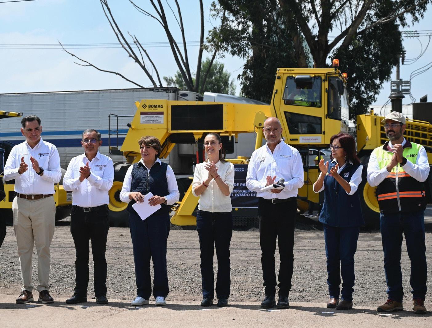 • Claudia Sheinbaum y Delfina Gómez entregaron los primeros trenes de pavimentación en la zona oriente del EdoMéx